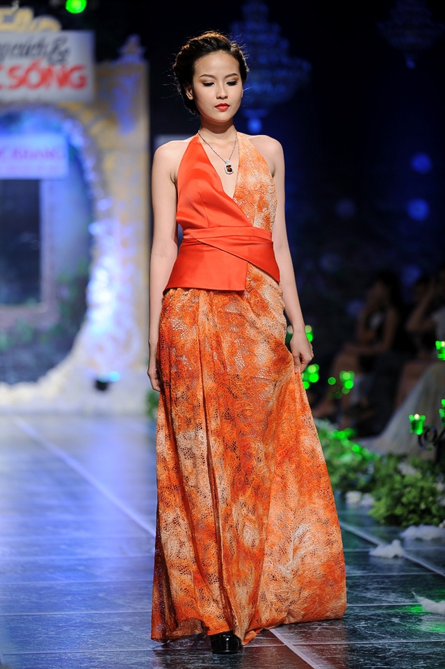 | Cùng với Ngọc Lan, Trúc Diễm đảm nhận vai trò chốt màn show diễn. Người đẹp trông tràn đầy năng lượng và sức hút khi trình diễn BST Giọt mưa. |