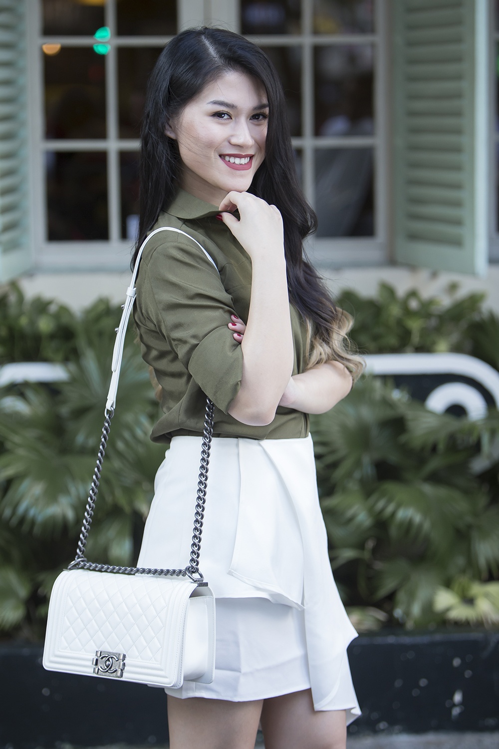 | Ngọc Thanh Tâm chứng tỏ gu thẩm mỹ với những set đồ hợp vóc dáng và bắt nhịp trào lưu. Trong ảnh, diễn viên Hiệp sĩ mù diện túi Chanel, giày Valentino hài hòa cùng bộ cánh thanh lịch. |