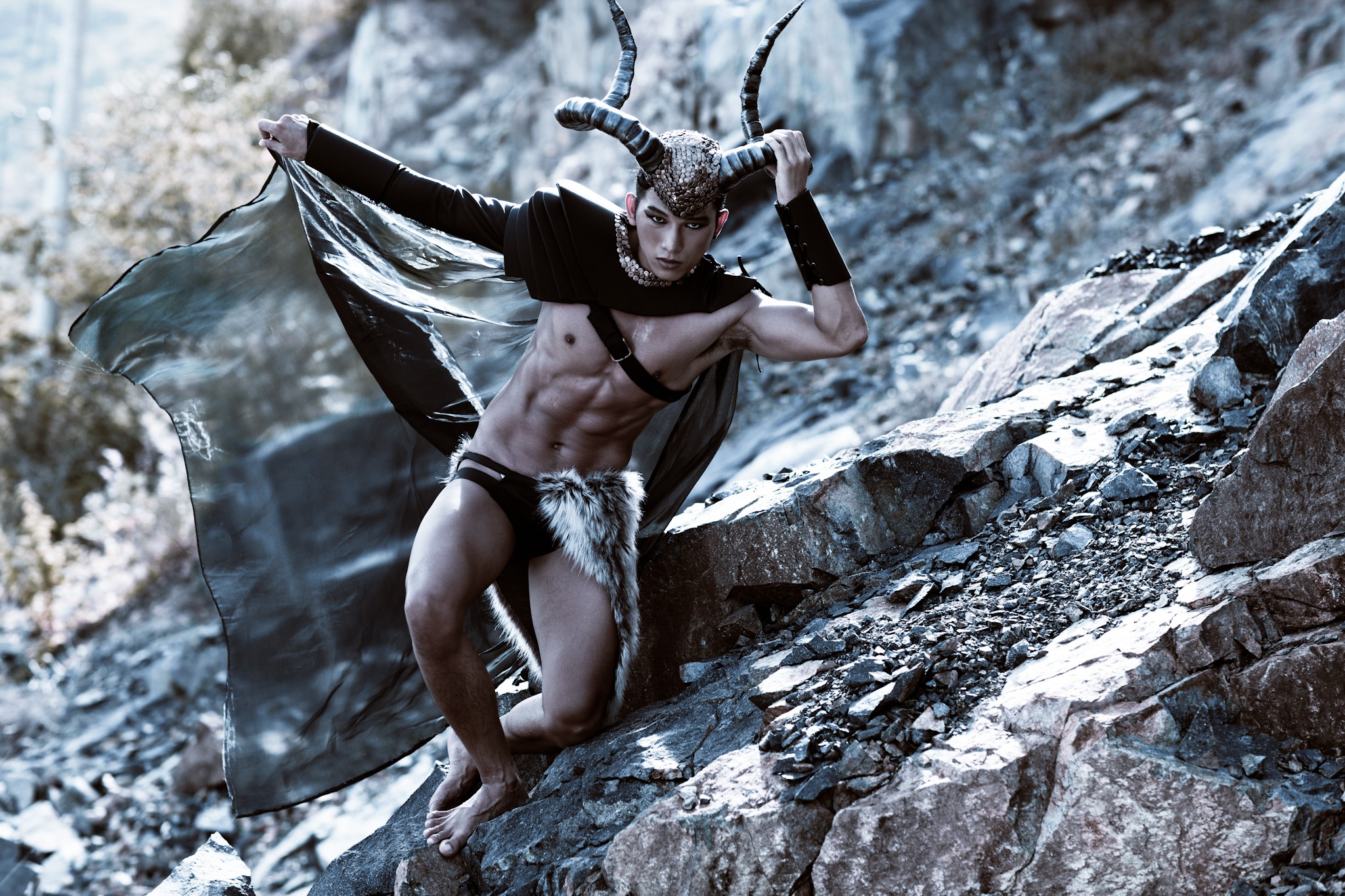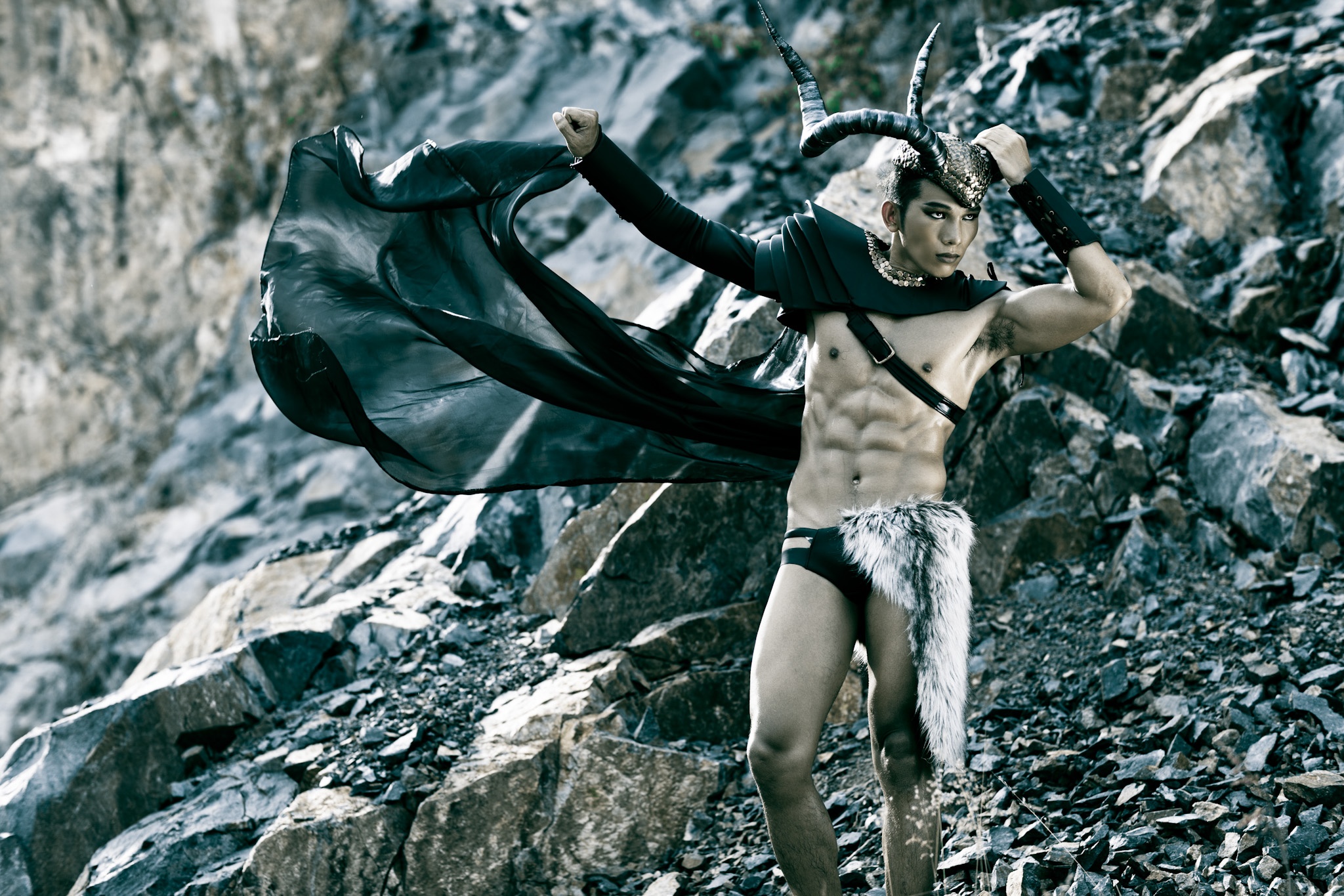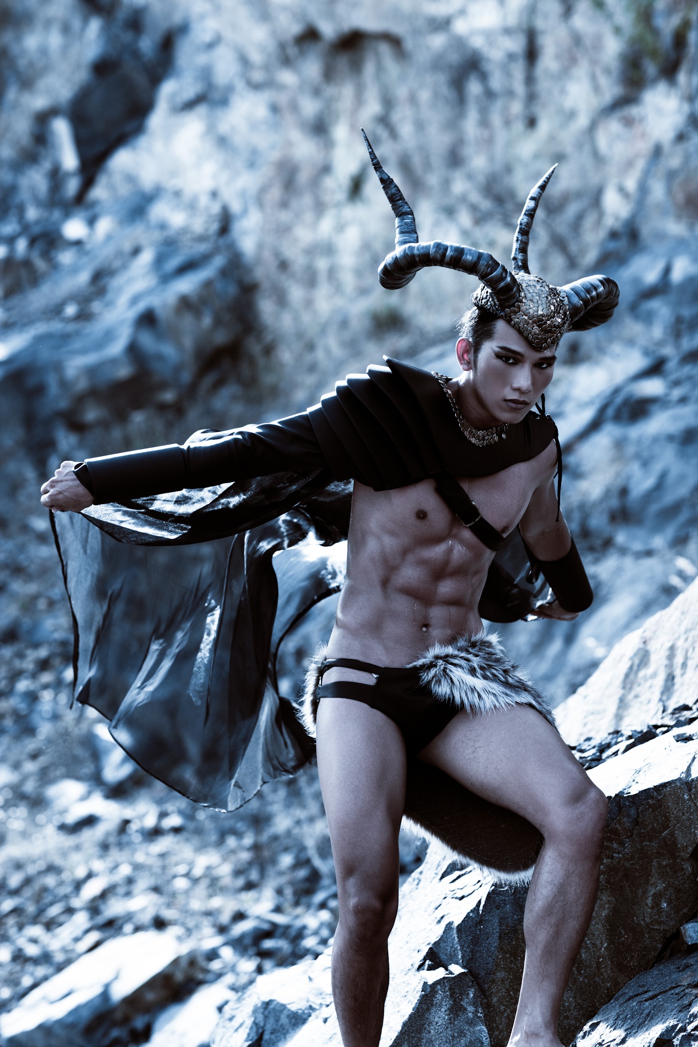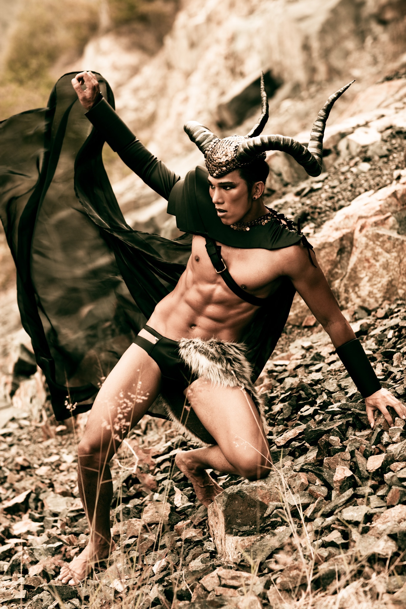 Trong bộ hình mới, siêu mẫu Ngọc Tình trang điểm ma mị, đội thiết kế sừng trâu dũng mãnh và thể hiện hình ảnh nổi loạn, hoang dã ở nơi vách núi đá.
