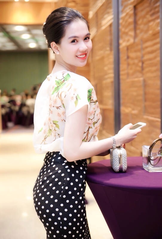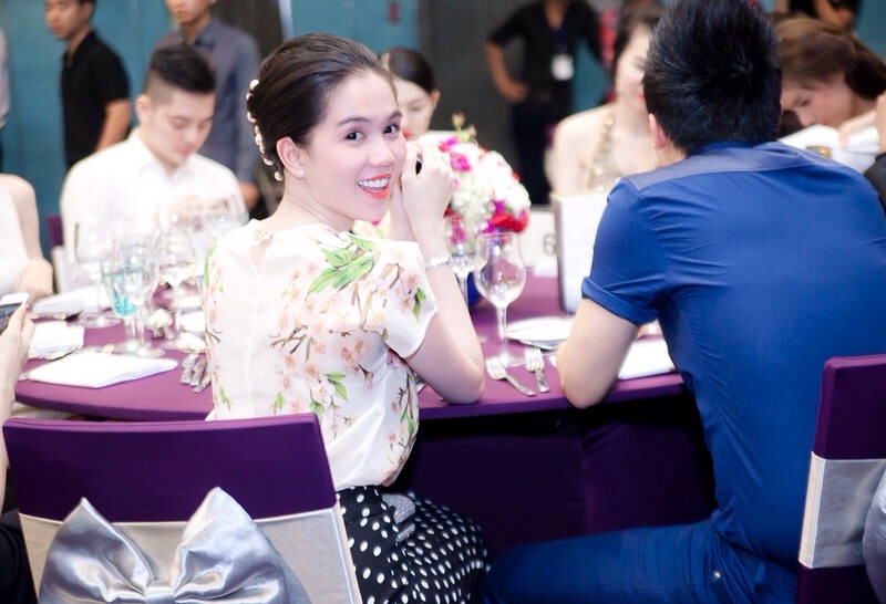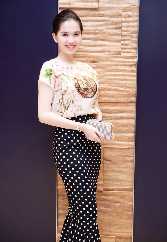 Ngọc Trinh cùng các đồng nghiệp công ty Venus tham dự buổi tiệc kỷ niệm 10 năm của một trang báo online. Khác với vẻ đẹp kiều diễm, gợi cảm mọi khi, lần này, ''nữ hoàng nội y'' mặc một chiếc váy nhẹ nhàng, phóng khoáng theo đúng xu hướng mùa hè của thương hiệu Dolce & Gabbana, được bày bán trên thị trường với giá 2.000 USD.