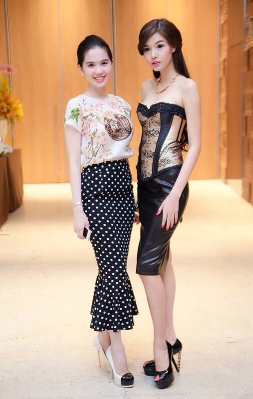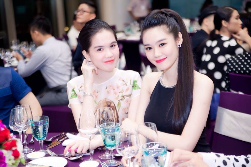 Phía bàn tiệc, Ngọc Trinh và Linh Chi luôn thân thiết.