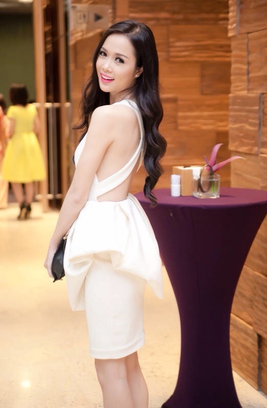 Người đẹp Vũ Ngọc Anh - top 5 Hoa hậu Việt Nam 2012 duyên dáng trong mẫu váy dạ hội màu trắng.