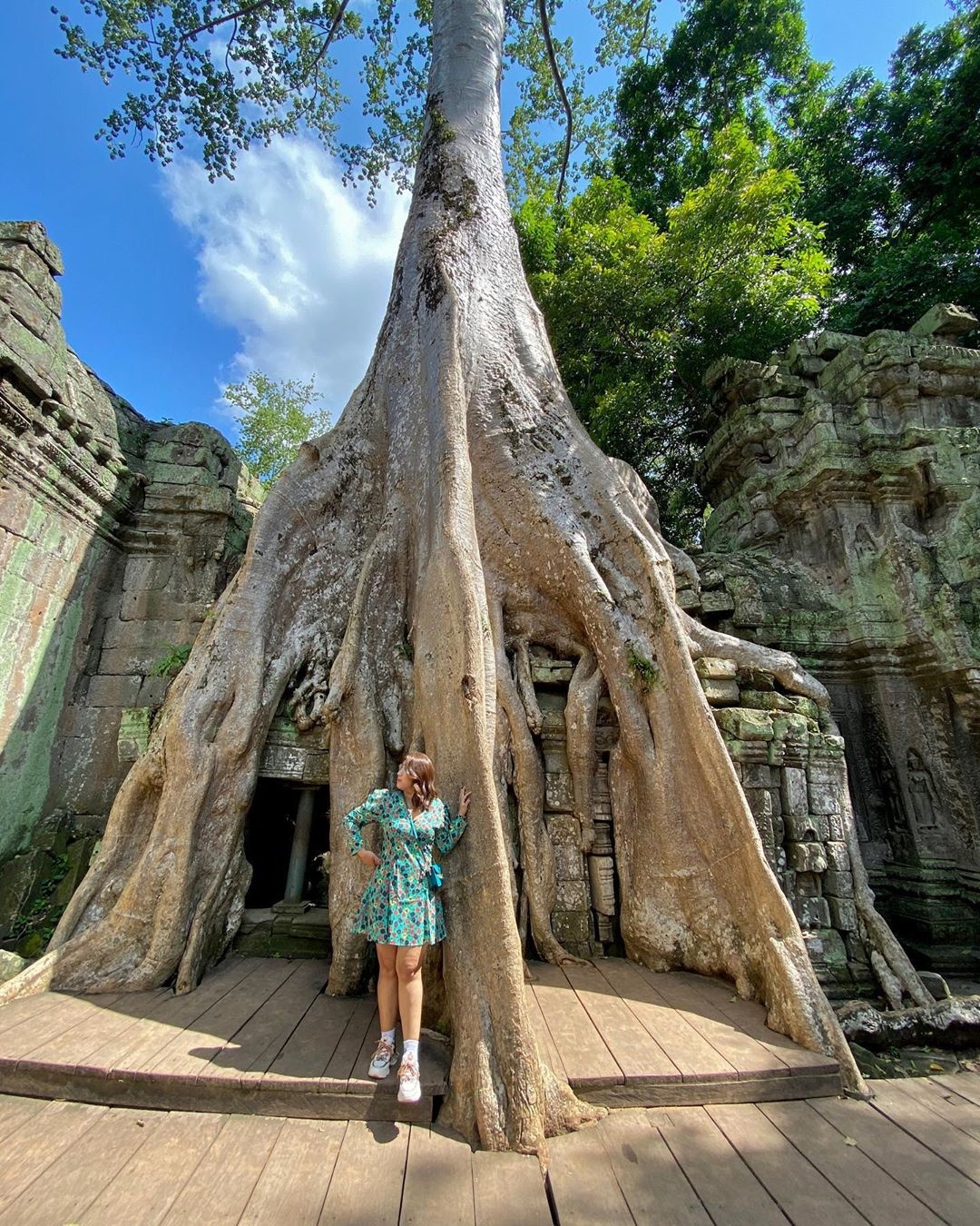| Để được vào tham quan Ta Prohm, du khách cần chi khoảng 37 USD cho vé một ngày. Bạn có thể đến thăm di tích vào bất kỳ lúc nào trong ngày. Tuy nhiên, nhiều người khuyên nên tránh thời điểm nắng nóng hoặc mùa mưa. Ảnh: Shewandersabroad. |
