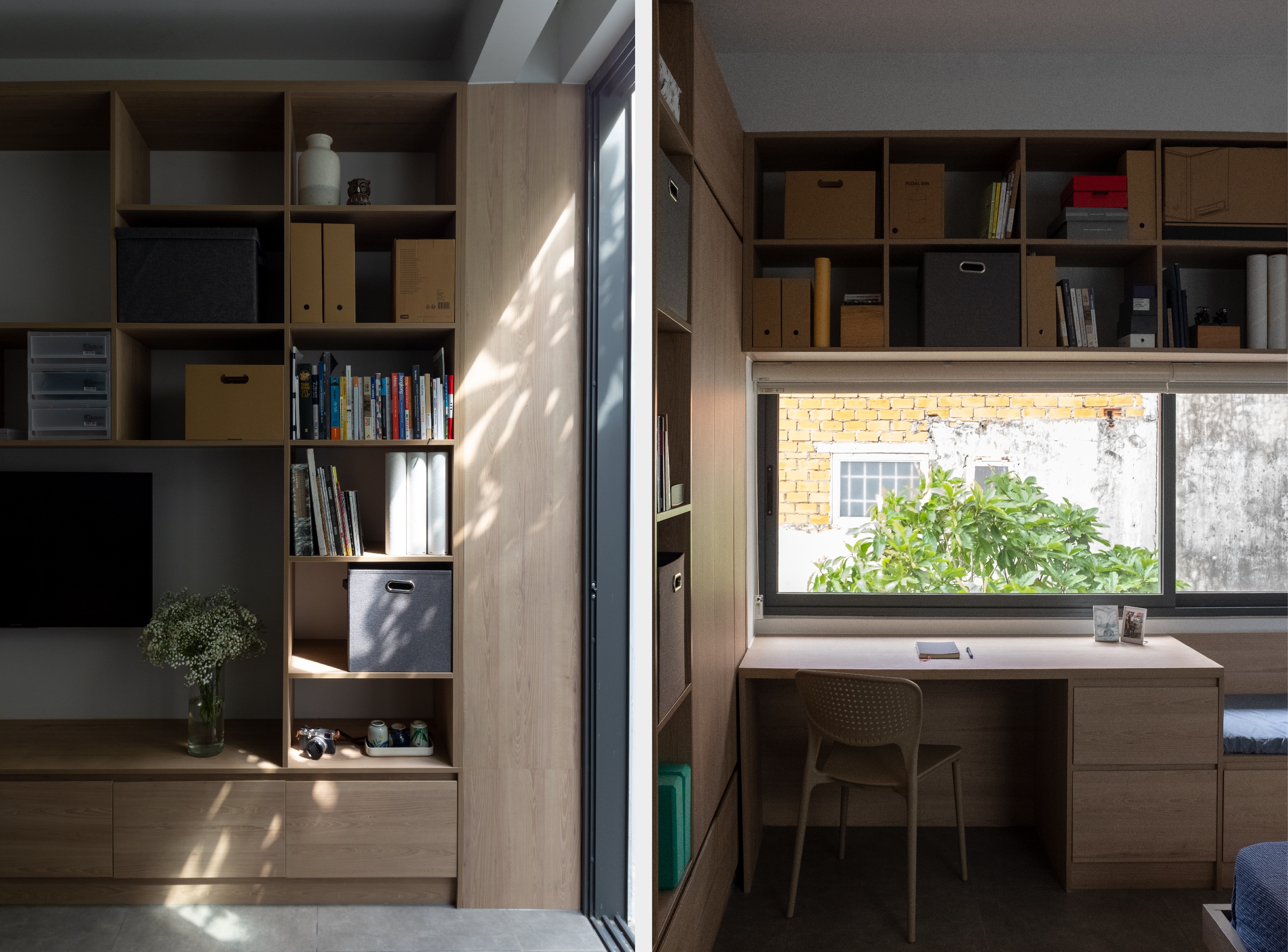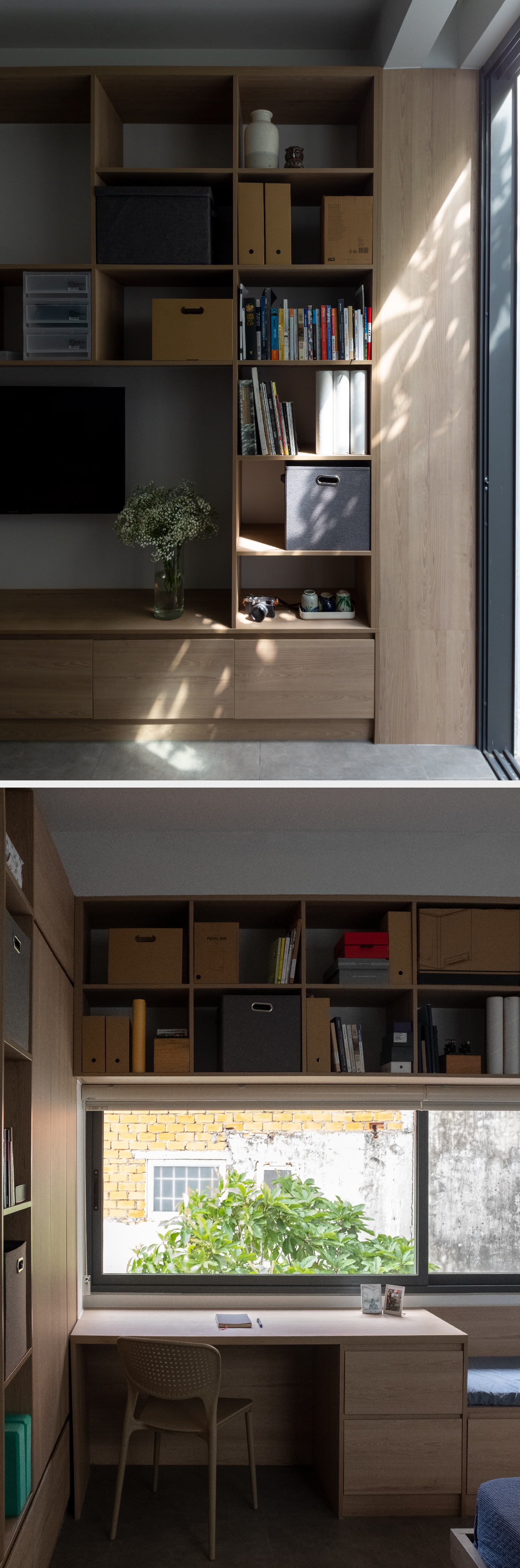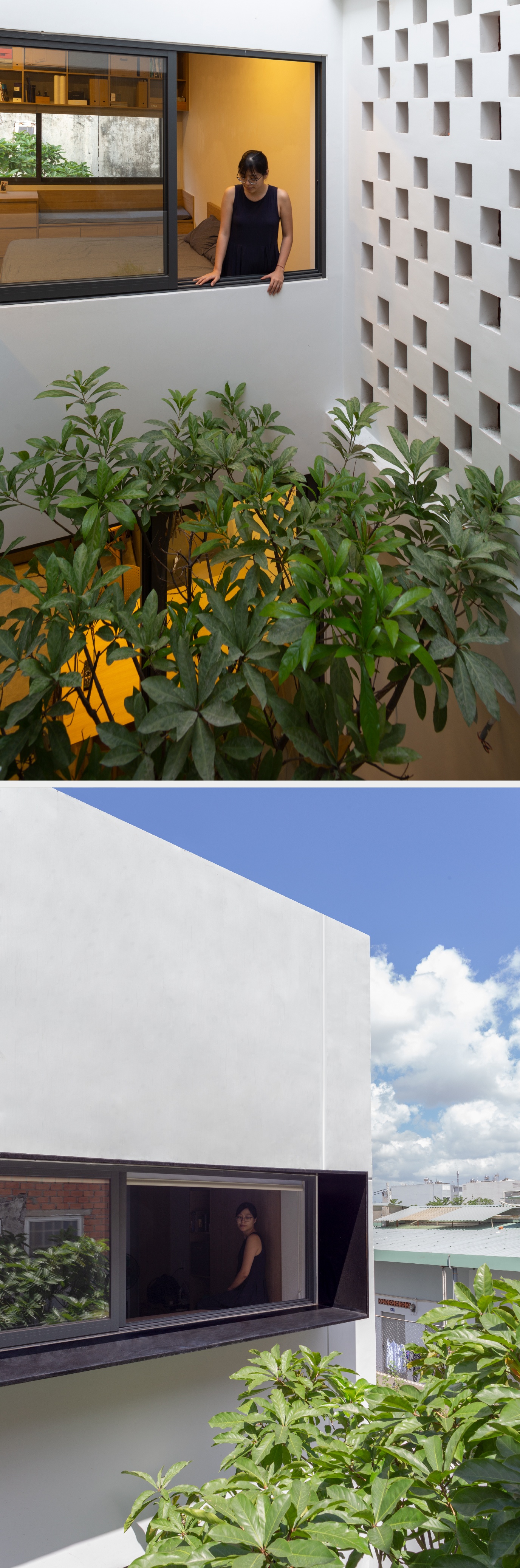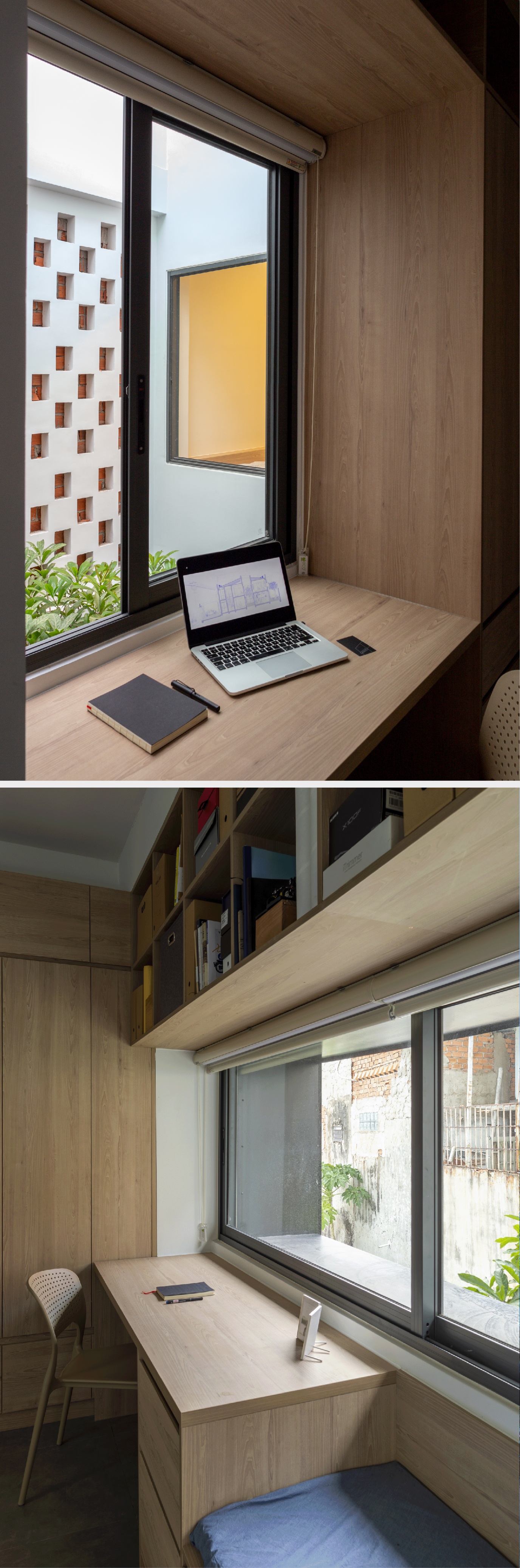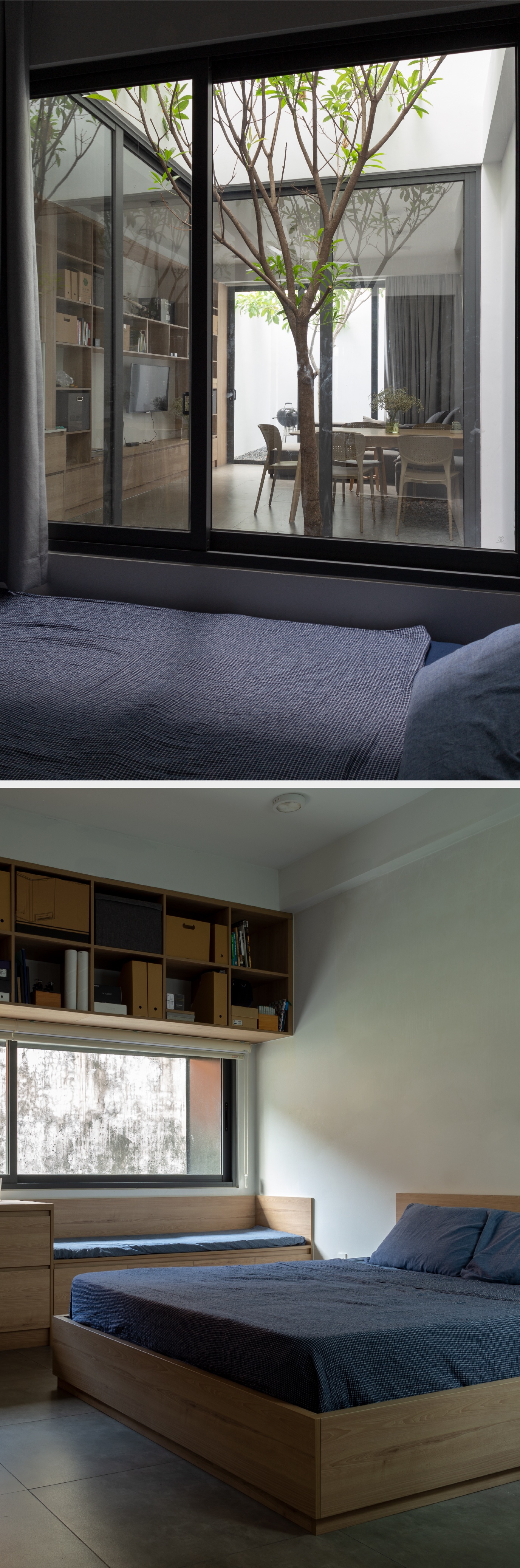 Tầng 2 là nơi dành cho phòng ngủ và làm việc. Kết nối qua giếng trời và cửa sổ, các phòng có sự thân mật vừa đủ để người trong nhà tương tác với nhau.