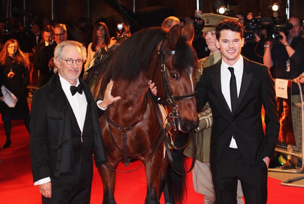 | Jeremy Irvine và đạo diễn lừng danh Steven Spielberg trong buổi ra mắt phim War Horse. |