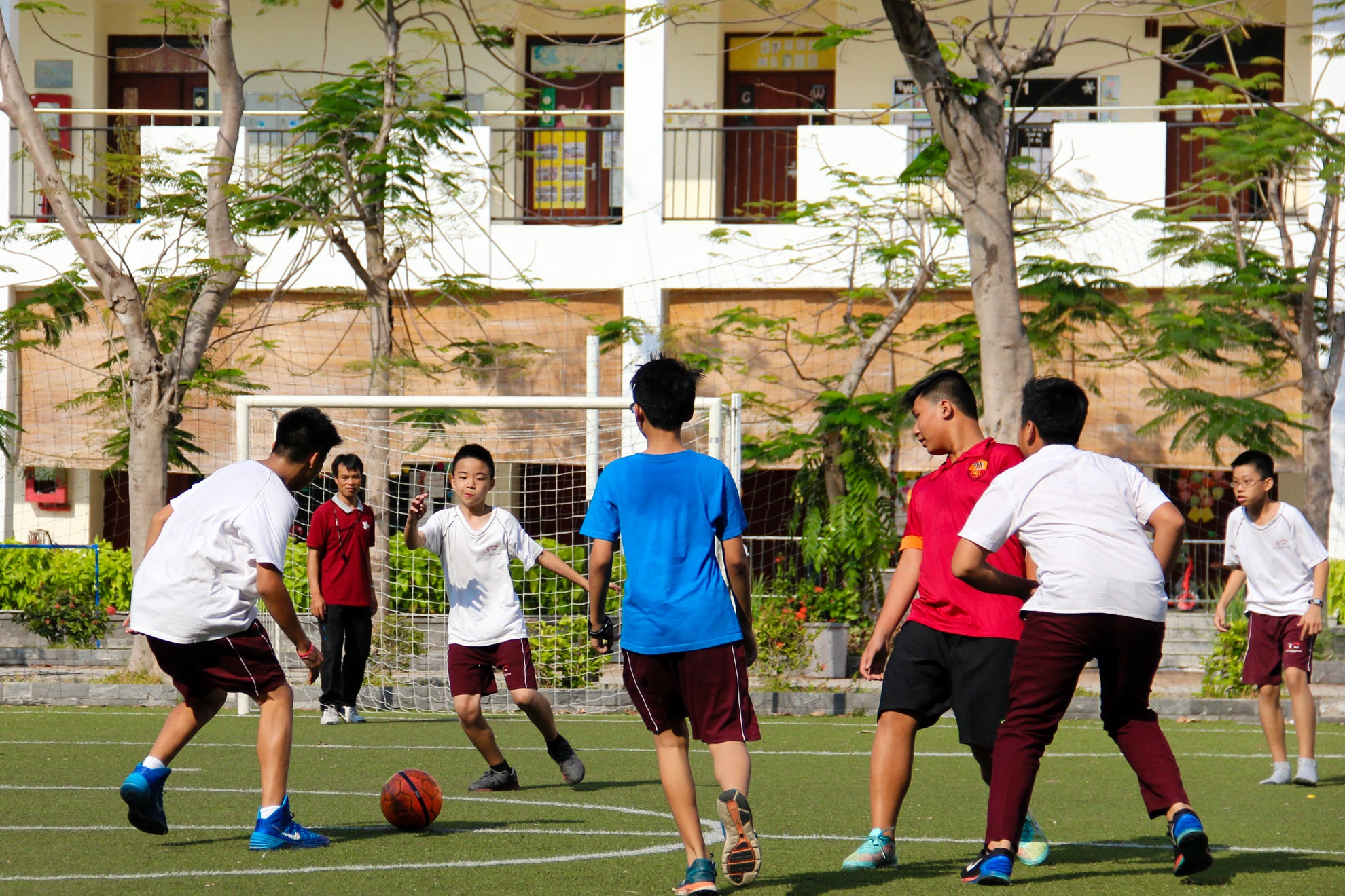 | Khu sân chơi, rèn luyện thể lực được xây dựng thành công trình riêng biệt có diện tích bằng 35% mặt bằng của trường. Khu vực này có thảm cỏ, vườn hoa, đài phun nước, cây bóng mát, sân đá bóng. |