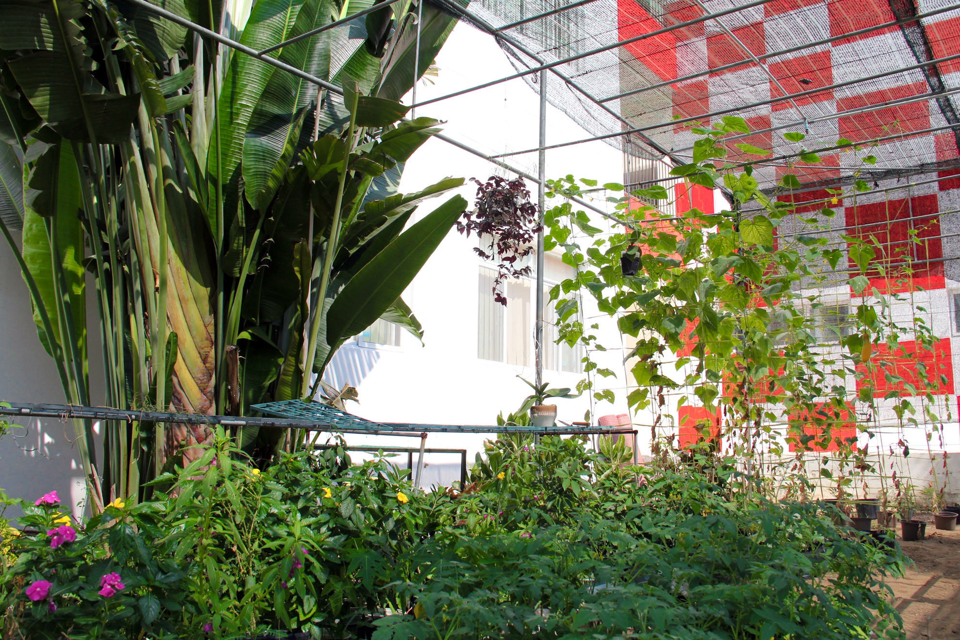 | Khu vườn thực vật được trồng bởi học sinh trong trường. Đây là nơi giúp các em thực tế bộ môn Sinh học. |
