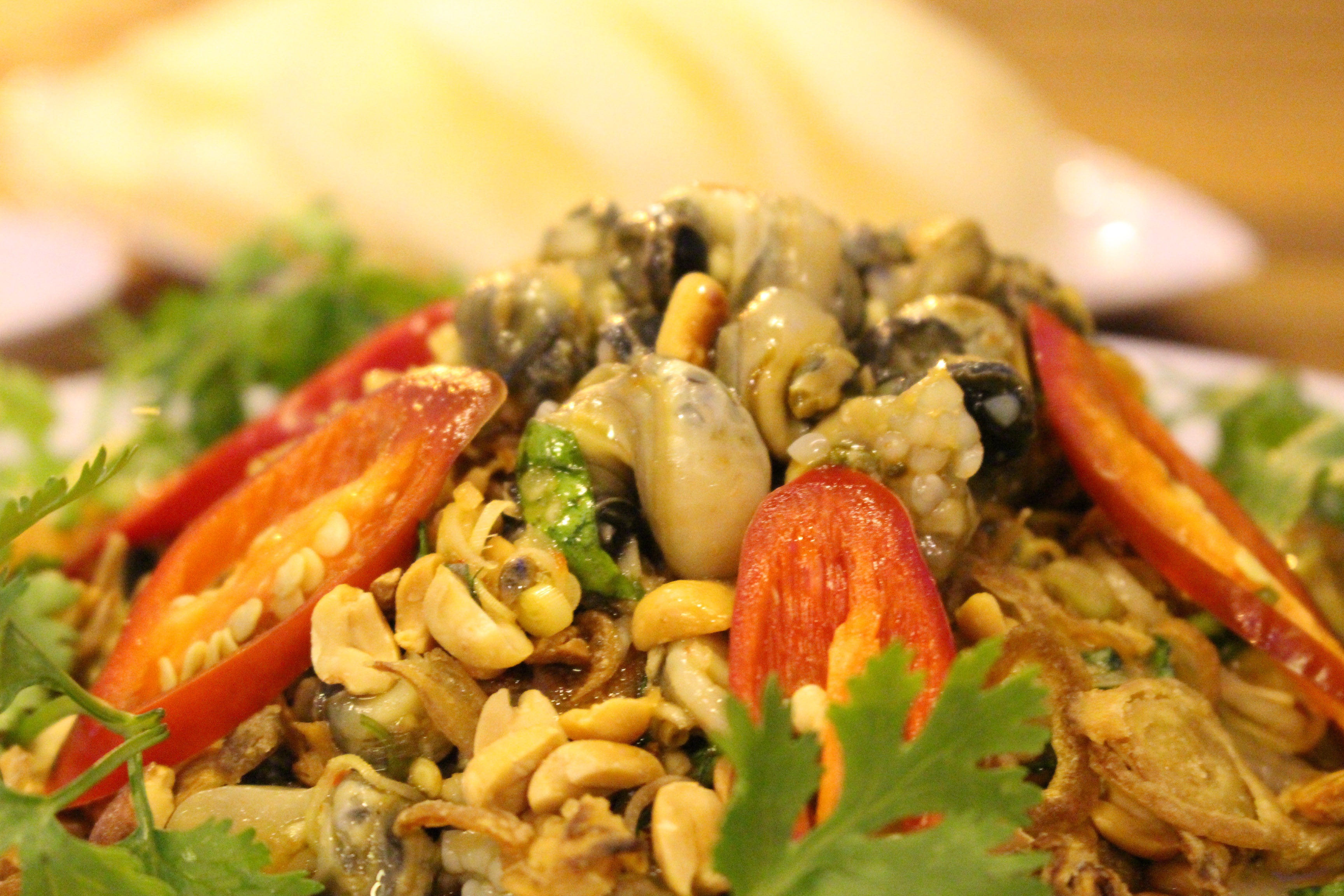 Phố ốc Vĩnh Khánh (Q. 4), nơi bạn có thể tìm thấy bất kỳ loại sò, ốc nào bạn thích vừa "chào đón" thêm thành viên mới: Gỏi ốc đắng. Đây là một trong những món ăn gắn chặt với ký ức của những người con miền Tây.