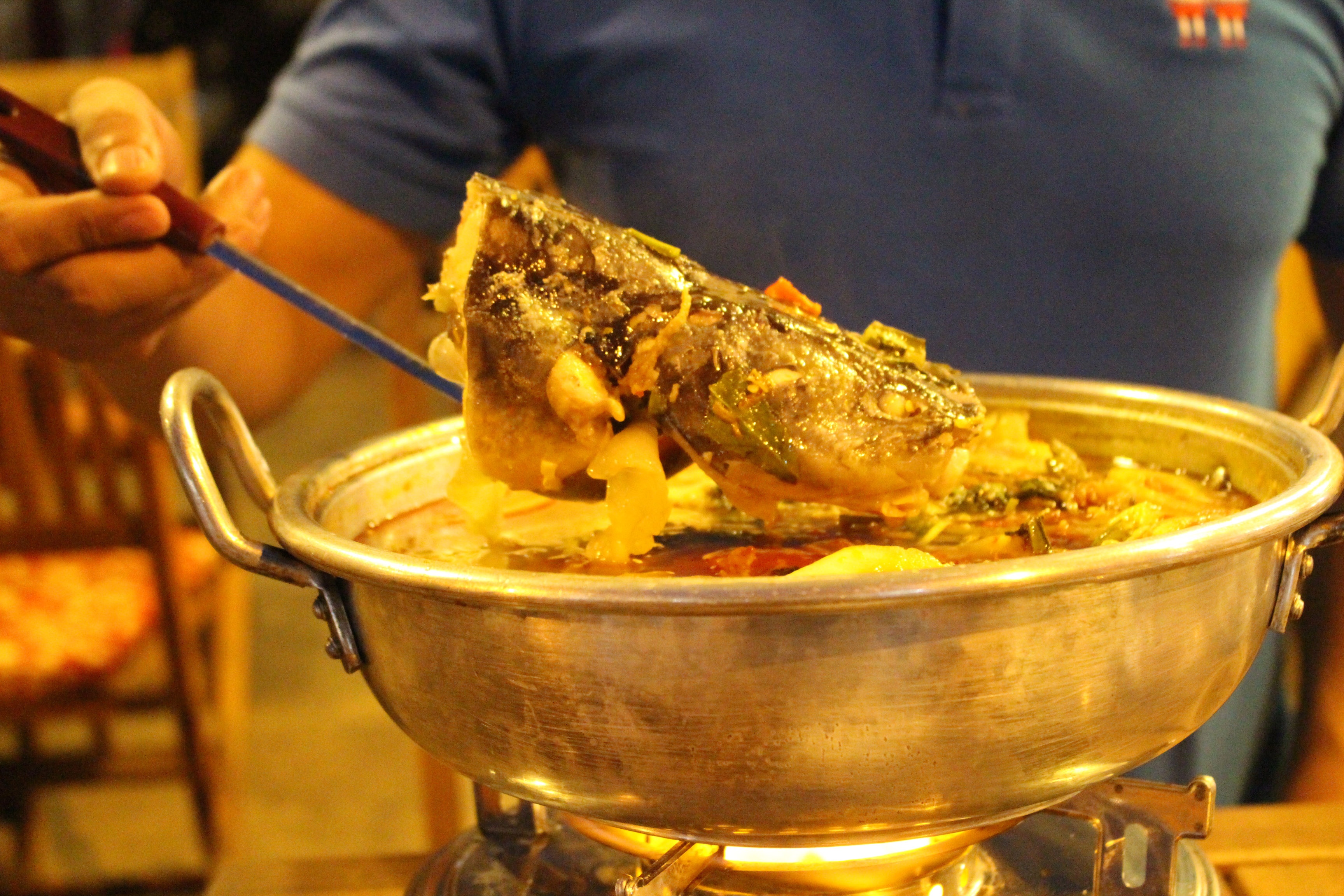 Điểm nhấn của món lẩu ngoài nước dùng chế biến đậm đà, vừa miệng là con cá lăng nặng khoảng 700-800 gr tươi ngon đi cùng. Được xử lý theo công thức riêng, cá không chỉ không có mùi tanh đặc trưng mà còn săn chắc, béo mềm khiến mọi người đều muốn gọi phần cá thêm để “chấm mút” thỏa thích.