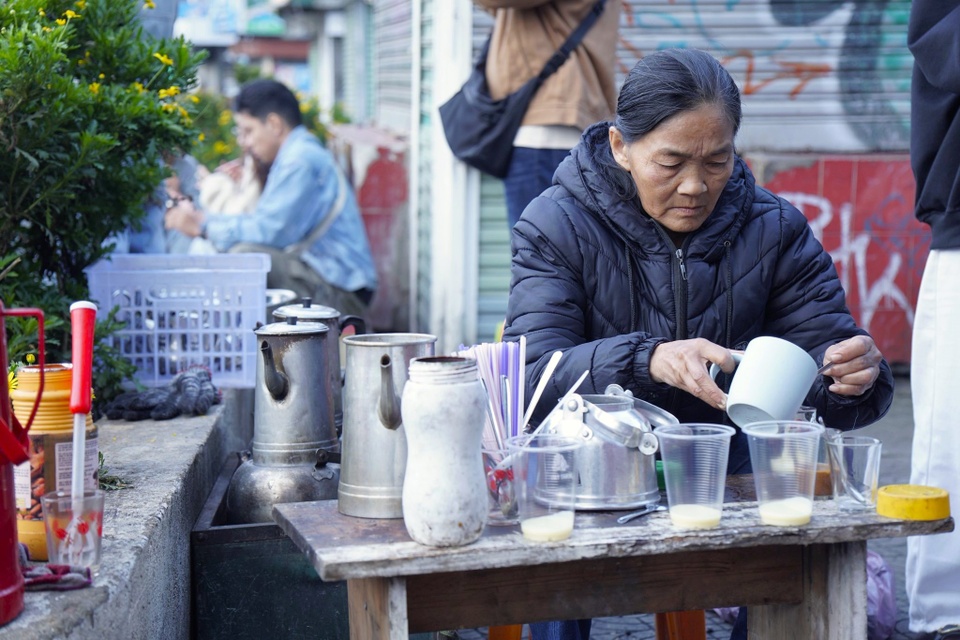 Bà Lan (ảnh trái) và chủ quán bán sữa đậu nành nóng, khoai lang nướng (ảnh phải) vẫn bám trụ tại khu vực này. Ảnh: H. An. |