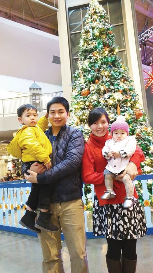 Nguyễn Thành Nhân bên gia đình nhỏ của mình. Ảnh: Tiền Phong. |