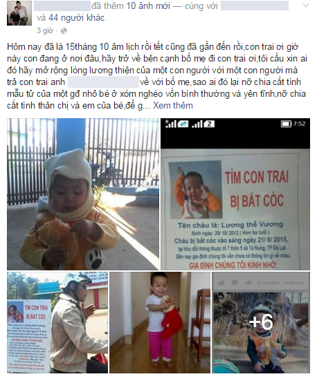 | Dân mạng và bạn bè chung tay giúp anh Huynh tìm con trai 3 tuổi bị mất tích. Ảnh chụp màn hình. |
