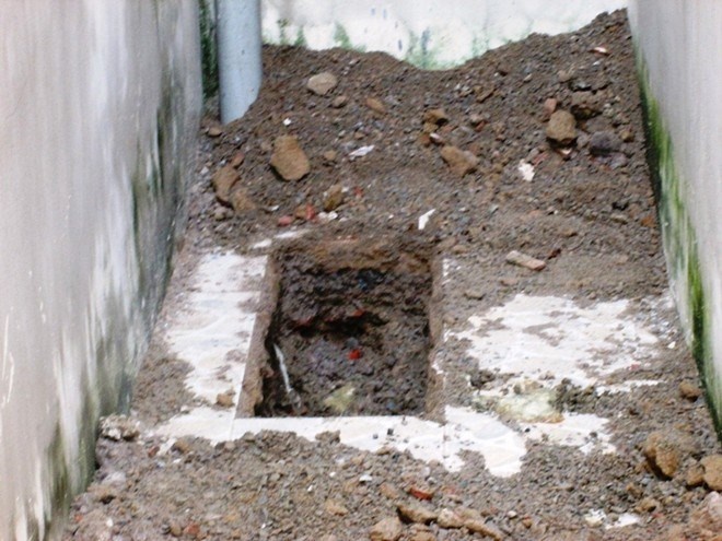 | Tâm đào hố chôn con trai 5 tuổi tại khu hẻm thông gió cạnh nhà. Ảnh: Ngọc An |