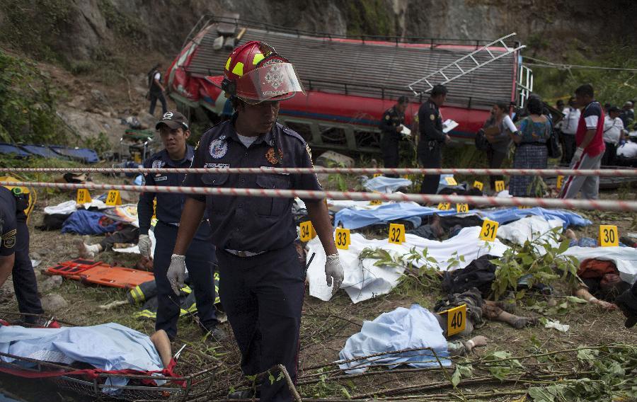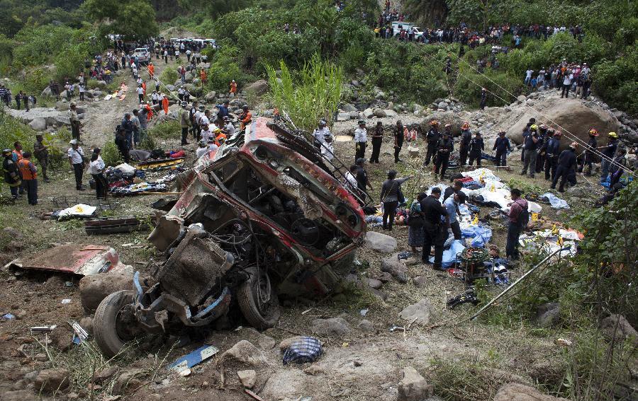 Sau khi lao xuống vực sâu 75 m ở khu vực San Martin Jilotepeque, Guatemala, chiếc xe bus chở hàng chục hành khách bẹp dúm. Tân Hoa Xã dẫn lời nhà chức trách Guatemala cho biết, ít nhất 43 người thiệt mạng trong vụ tai nạn và 40 khác bị thương. Chiếc xe bus gặp nạn khi nó đang chở khoảng 90 người, gần gấp đôi số hành khách mà nó được phép chở. |