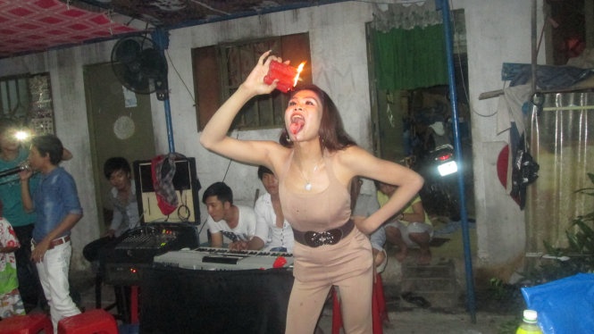 | Cát Thy (người chuyển giới từ nam sang nữ) sống tại quận 8, TP HCM trong một lần cùng nhóm bạn chuyển giới lập nhóm xiếc đi biểu diễn. |
