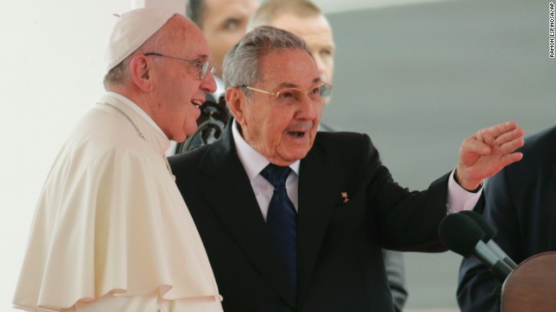 | Chủ tịch Cuba Raul Castro đón tiếp Giáo hoàng Francis khi ông đến La Habana. Ông Raul Castro cảm ơn Giáo hoàng vì sự giúp đỡ trong việc khuyến khích tái thiết lập quan hệ ngoại giao với Mỹ sau hơn nửa thế kỷ thù địch. |