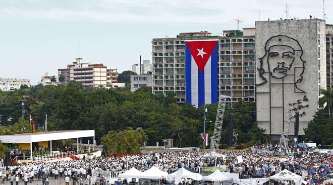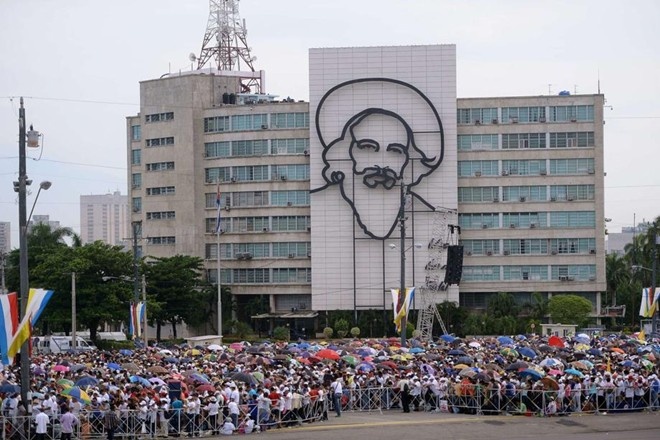| Cũng trên quảng trường, chính quyền Cuba đã dựng một lễ đài khổng lồ nhằm phục vụ buổi lễ đón Giáo hoàng. Ngay bên cạnh lễ đài là bức chân dung khổ lớn của người anh hùng dân tộc nổi tiếng Che Guvera của Cuba.