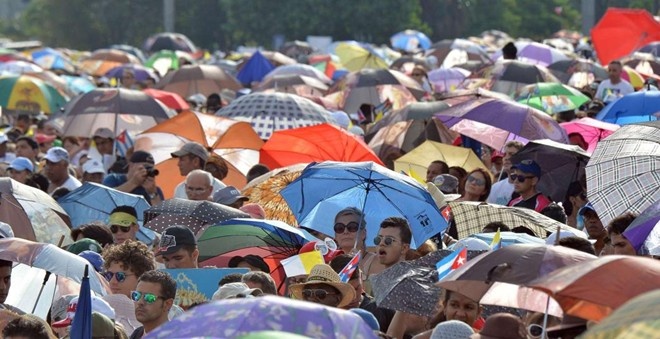 Bất chấp nắng nóng tại thủ đô La Havana, người dân Cuba đã mang theo ô để không bỏ phí một phút giây nào trong buổi lễ đón tiếp Giáo hoàng.