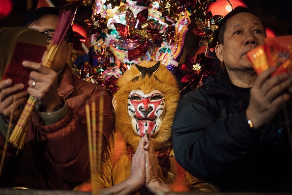 | Người dân Hong Kong (Trung Quốc) đi thắp nhang ở chùa Wong Tai Sin sau đêm giao thừa. |