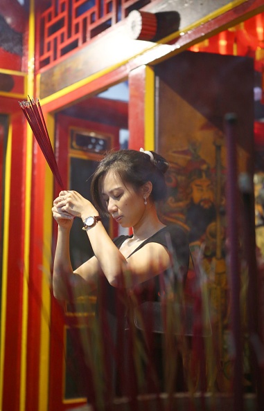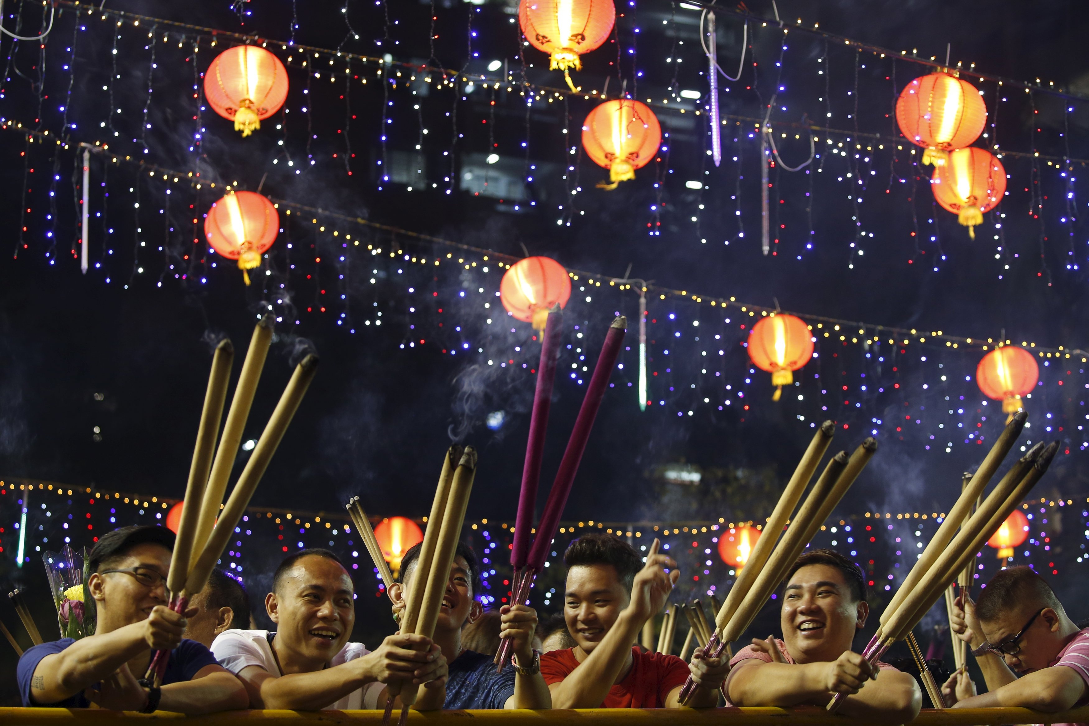 Người dân ở Singapore, Indonesia và Hong Kong (Trung Quốc) đi chùa cầu an và thắp hương vào ngày đầu năm mới âm lịch 2016.
