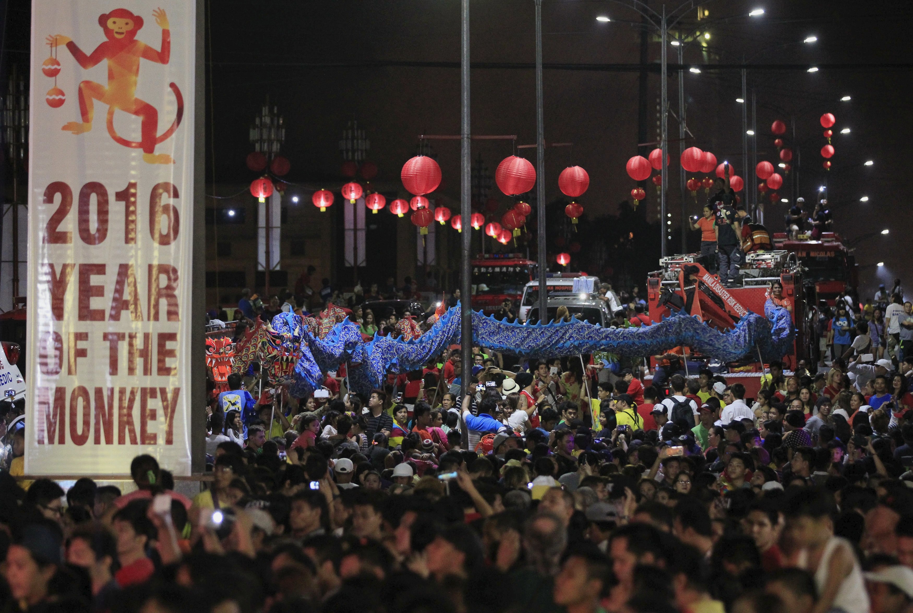 | Người dân ở khu phố Hoa, Manila, Philippines, cùng xuống đường đón năm mới âm lịch 2016. |