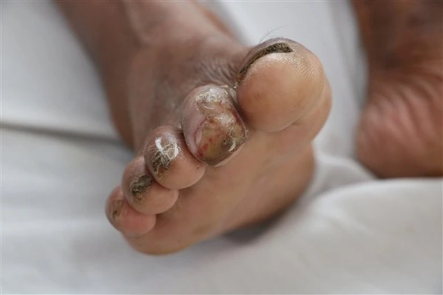 Chân của một người bệnh sau khi tiếp xúc với vi khuẩn Burkholderia pseudomallei. Ảnh: Bệnh viện Đa khoa Hà Tĩnh. |