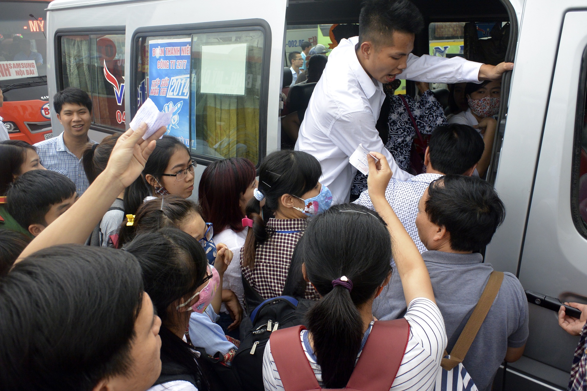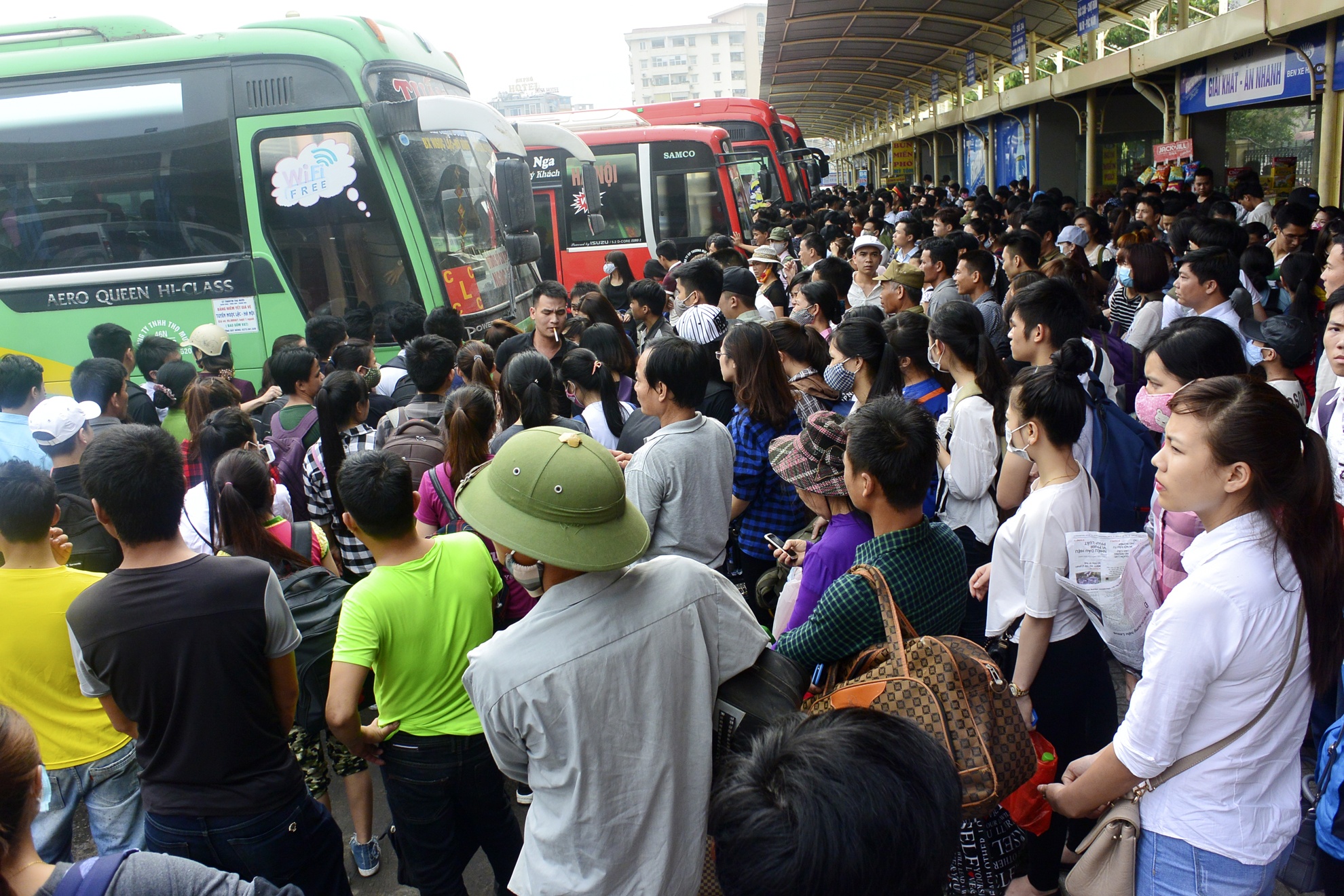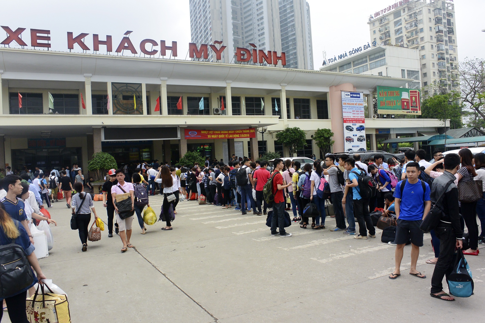 | Do lượng khách đón xe về Quảng Ninh quá đông, hàng trăm người phải xếp hàng dài từ quầy mua vé ra tới cổng bến. Theo thông tin từ bến xe Mỹ Đình, sát dịp nghỉ lễ, mỗi ngày có 1.350 xe xuất bến. Riêng tuyến Hà Nội - Quảng Ninh có số lượng khách lớn nhất, tăng 40%.
