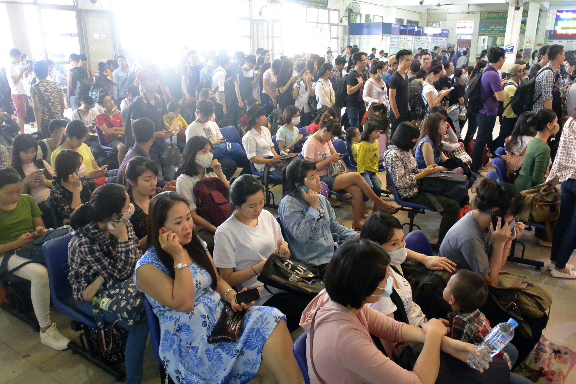 | Bên trong bến, lượng khách quá tải so với ngày thường.