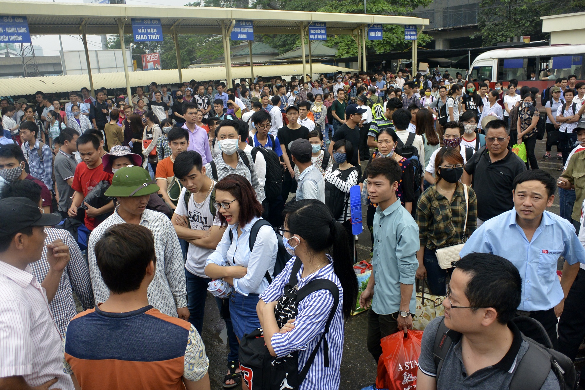 | Chiều 29/4, bến xe Mỹ Đình đông hơn thường lệ khi nhiều người vội vã thu dọn về quê sớm nghỉ lễ 30/4 và 1/5. |