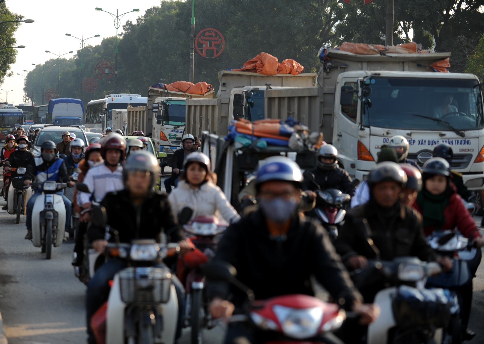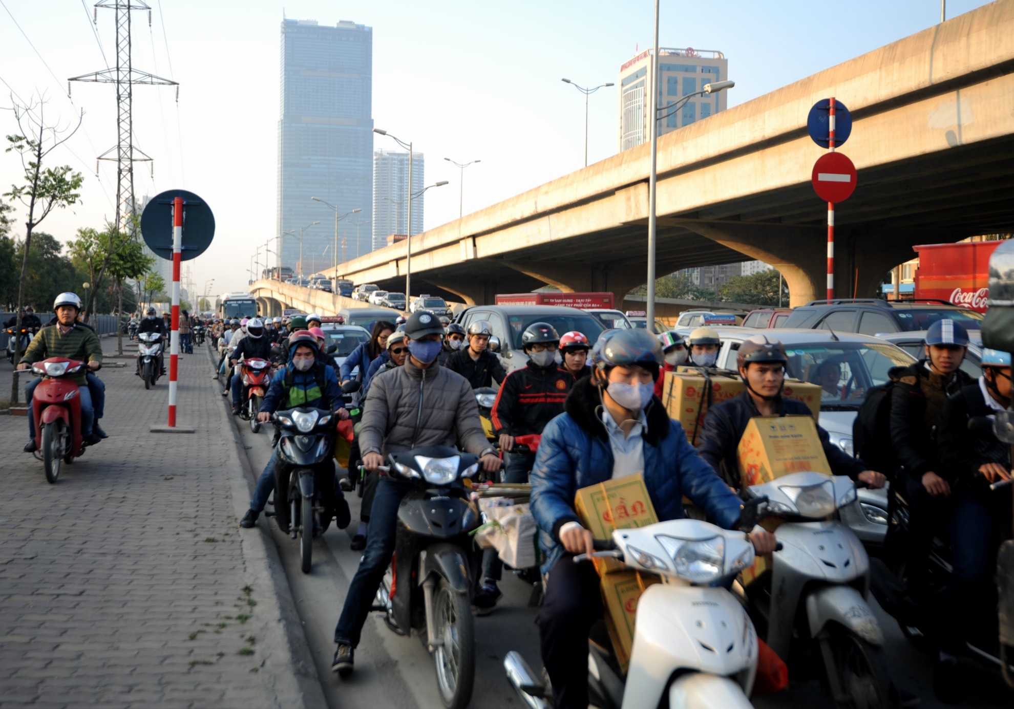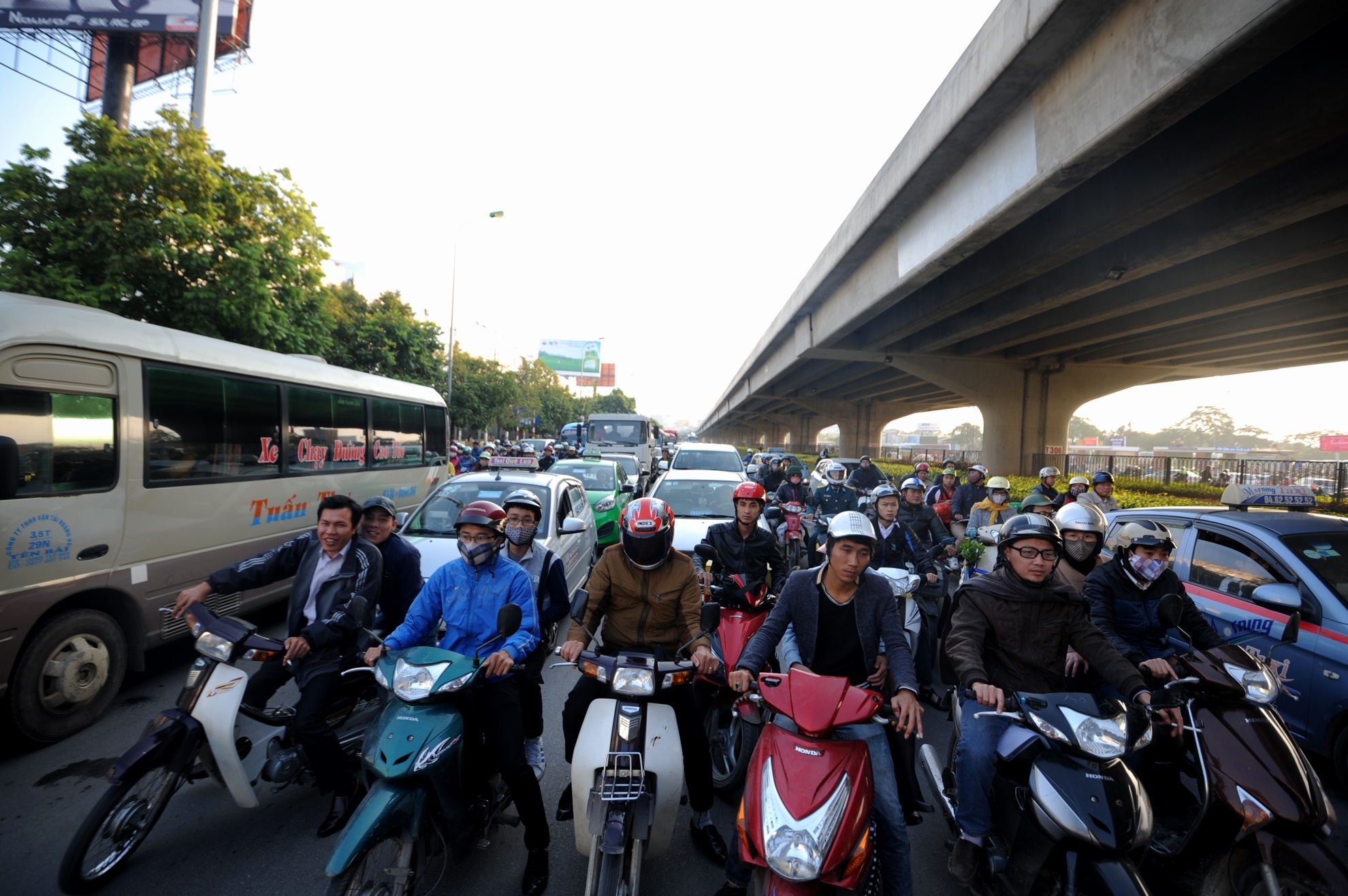| Chiều 31/12, nhiều người dân vội vã ra đường để về quê nghỉ lễ khiến các tuyến đường lâm vào tình trạng ùn ứ trầm trọng. |