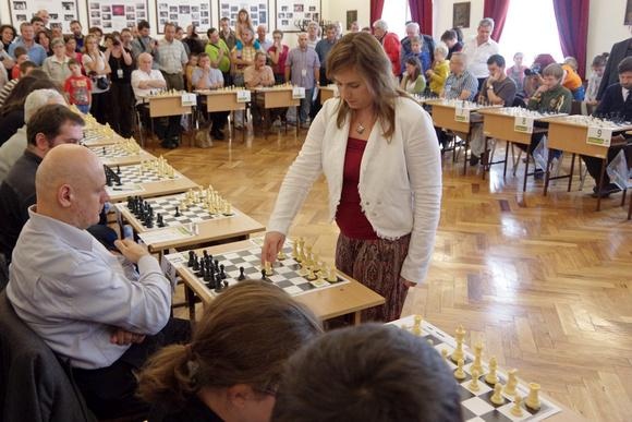 | Judit thi đấu cùng 28 kỳ thủ trong ngày nhằm quảng bá cho môn cờ vua. Ảnh: Twiter |