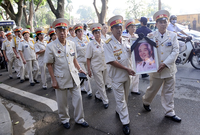 Những người cựu chiến binh trang trọng mang di ảnh Đại tướng đến 30 Hoàng Diệu.