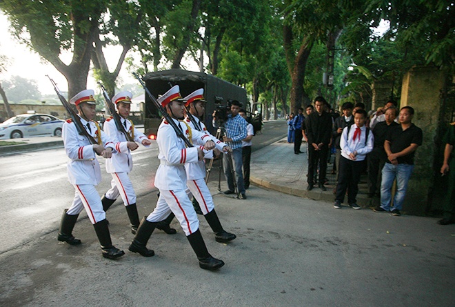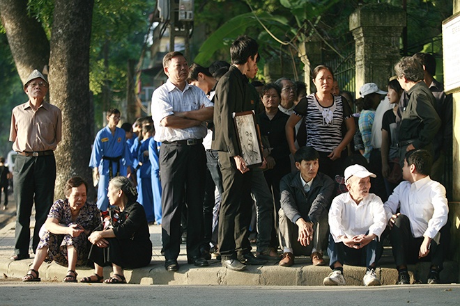 | 5h sáng, nhiều người đã đến trước cổng nhà của Đại tướng Võ Nguyên Giáp tại 30 Hoàng Diệu (quận Ba Đình, Hà Nội) để chờ vào viếng. |