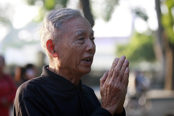 Một cụ ông đứng chắp tay vái vọng từ ngoài đường khá lâu.