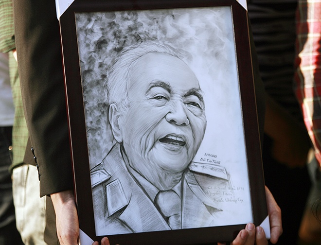 Bức tranh về Đại tướng Võ Nguyên Giáp do một sinh viên phác họa.