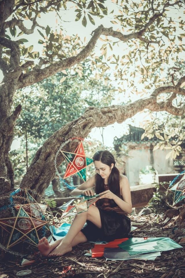 | Trong bộ ảnh mới nhất, July chụp ảnh với những chiếc đèn lồng do mình tự tay cắt dán. Cô cho biết, việc tự mình làm những chiếc đèn ông sao là cách giúp cô nhớ về những kỷ niệm thời thơ ấu khó quên. |