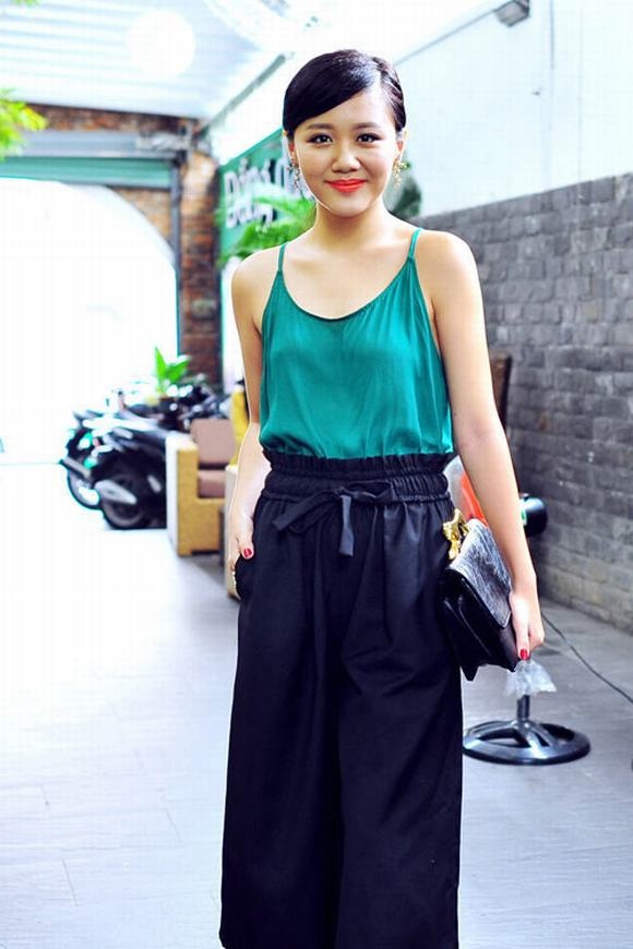 | Văn Mai Hương chứng minh độ sành mốt với trang phục áo hai dây gợi cảm, mix kèm quần lửng ống suôn rộng. Tuy nhiên, cô vẫn bị chê trách là chọn đồ không hợp dáng. |