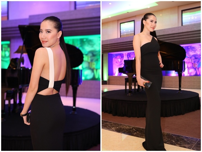 Trong buổi tiệc ra mắt thương hiệu riêng, ''nữ hoàng nội y'' khéo léo chọn trang phục tôn dáng và tạo sức hút lưng trần mượt mà. Trang phục tinh tế giúp cô nhận được nhiều lời khen từ các tín đồ thời trang.