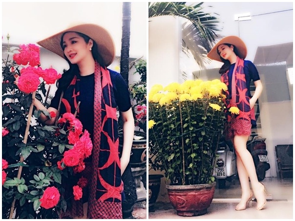 Hoa hậu đền Hùng Giáng My chọn phong cách nữ tính diện trong 3 ngày đầu năm mới. "Người đẹp không tuổi" còn khéo léo kết hợp khăng quàng hàng hiệu và mũ rộng vành tảo vẻ trẻ trung, sành mốt.