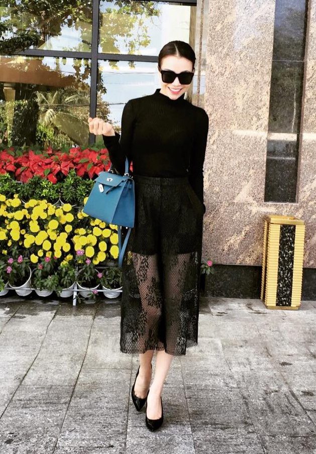 | Trong khi đó, Trà Ngọc Hằng vẫn trung thành với phong cách gợi cảm. Đầu năm Ất Mùi, người đẹp xuống phố vơi mốt váy ren trong suốt, để lộ đôi chân thon dài quyến rũ. Set trang phục có tông đen tuyền, là gam màu được người mặc yêu thích trong thời gian gần đây. |
