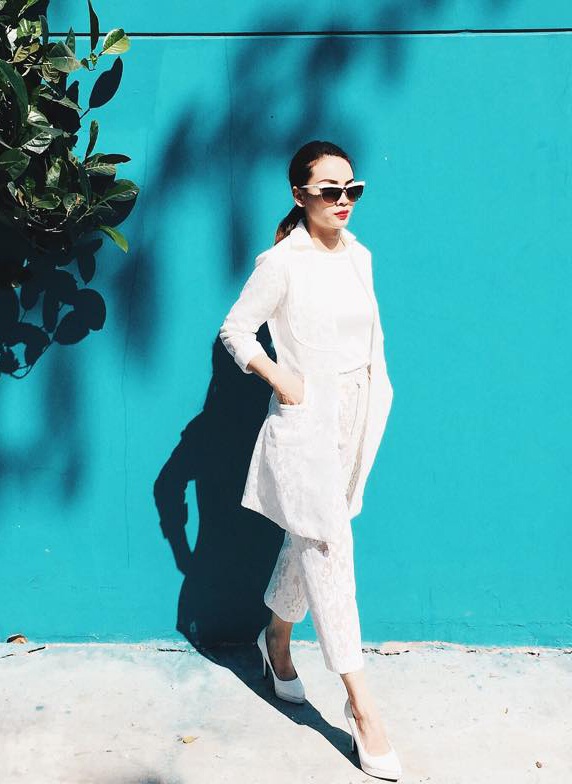 | Yến Trang tiếp tục cho thấy phong độ hình ảnh của mình khi diện những set trang phục đi đầu xu hướng xuân 2015 trong dịp đầu năm mới. Những ngày đi chúc Tết, nữ ca sĩ diện bộ suit ren khá nổi bật. Set trang phục sử dụng màu trắng đồng bộ, mang lại nét trang nhã cho "Én chị". |