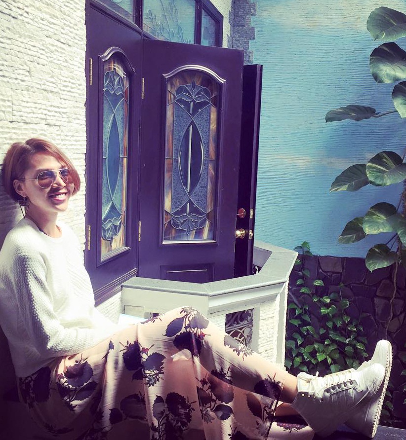 | Diện trang phục có màu sắc rực rỡ phù hợp không gian mùa xuân, bà xã nhạc sĩ Hồ Hoài Anh tự tin thả dáng khi tản bộ trên những con phố gần nhà. |