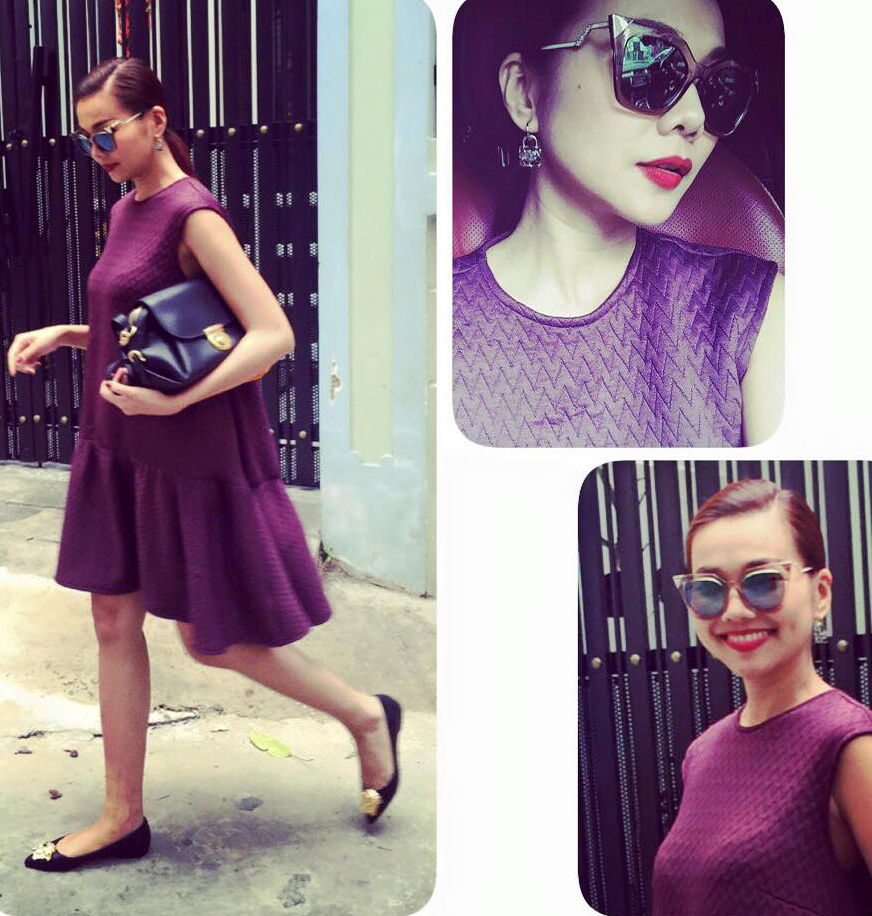| Tại Việt Nam, Thanh Hằng khoe phong cách đời thường nổi bật ngay trong ngày đầu tiên của năm 2015. Người đẹp chia sẻ, cô thích diện trang phục nhiều màu sắc vào mùng 1 Tết với mong muốn cả năm tươi vui, hạnh phúc. Bộ cánh tông tím bắt mắt có kiểu dáng hạ eo, chất liệu vải sang trọng mang lại hình ảnh đẹp cho nữ diễn viên phim Siêu nhân X. |