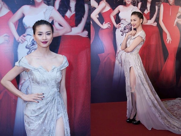 | Chung Thục Quyên chọn thiết kế táo bạo tạo gây chú ý tại sự kiện. Song mẫu váy xẻ tà cao hút để lộ nội y không giúp người đẹp mang về đánh giá cao. Thậm chí, chân dài còn bị đưa vào nhiều danh sách sao xấu. |