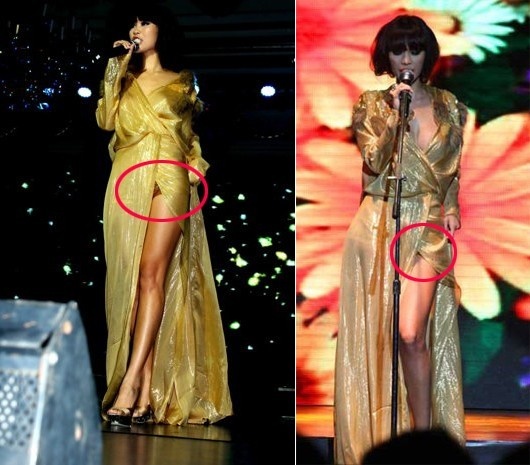 | Trang phục xẻ cao là "vũ khí" giúp các người đẹp phát huy lợi thế đôi chân thon dài gợi cảm. Tuy nhiên, cách chọn thời trang xẻ sâu quá đà khiến nhiều chân dài rơi vào tình huống phản cảm, kém duyên và không nhận được cảm tình từ giới sành mốt. Tại sự kiện trao giải phong cách do tạp chí Elle tổ chức, hoa hậu Thùy Dung kém nổi bật giữa dàn người đẹp vì bộ cánh có điểm xẻ tà không mấy duyên dáng. |