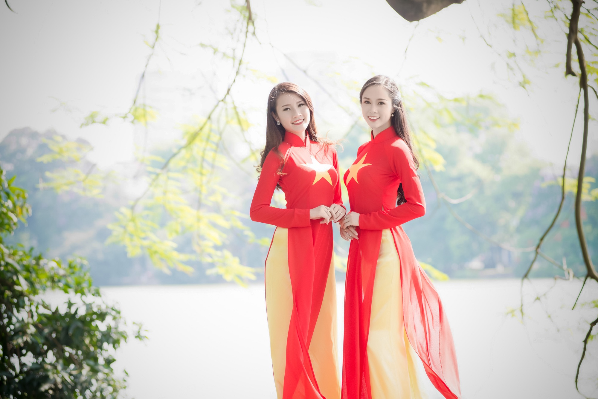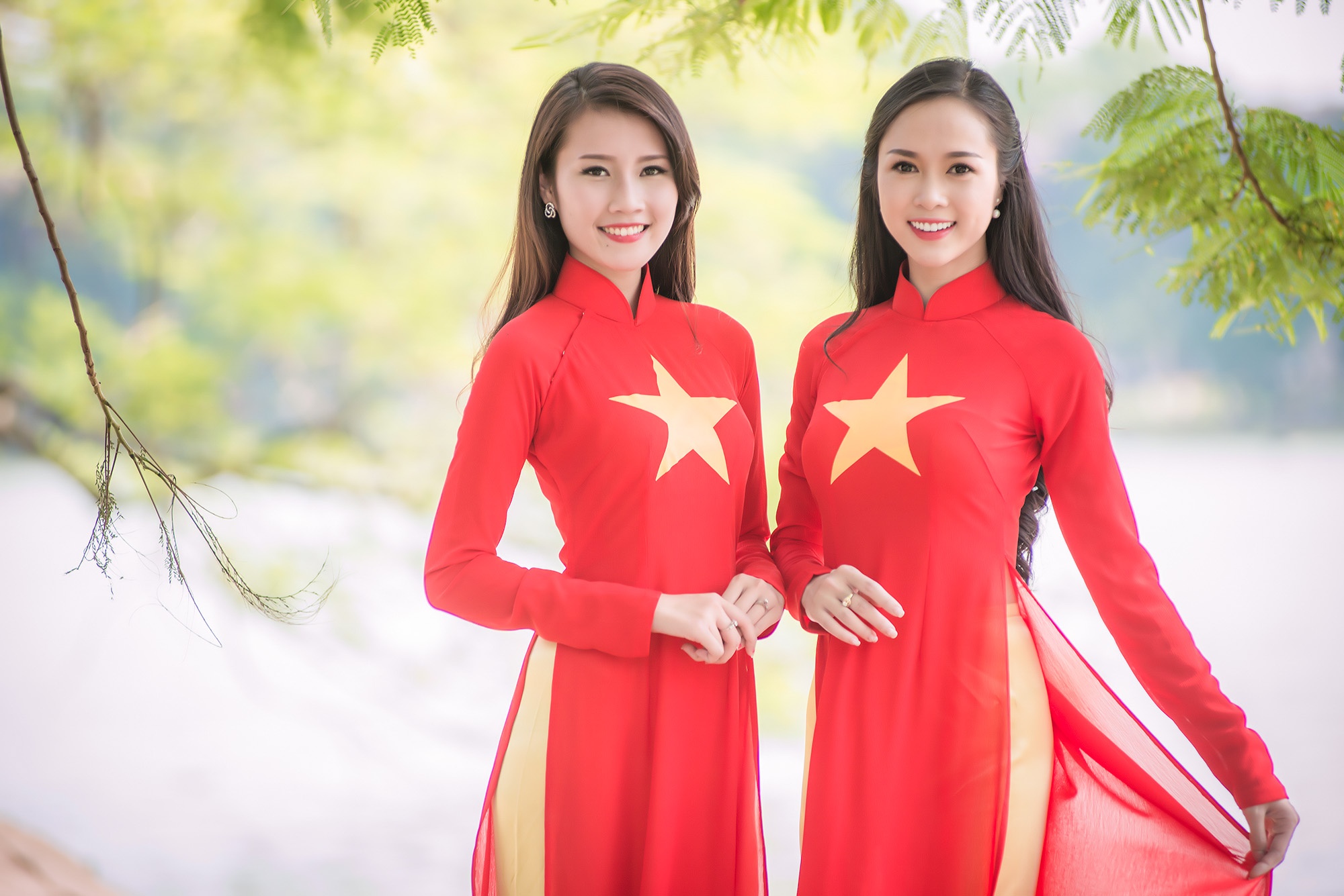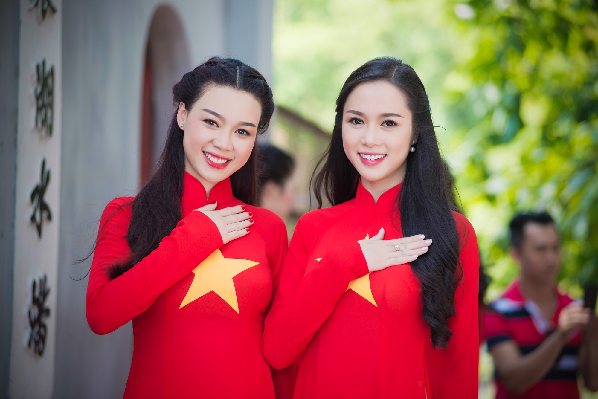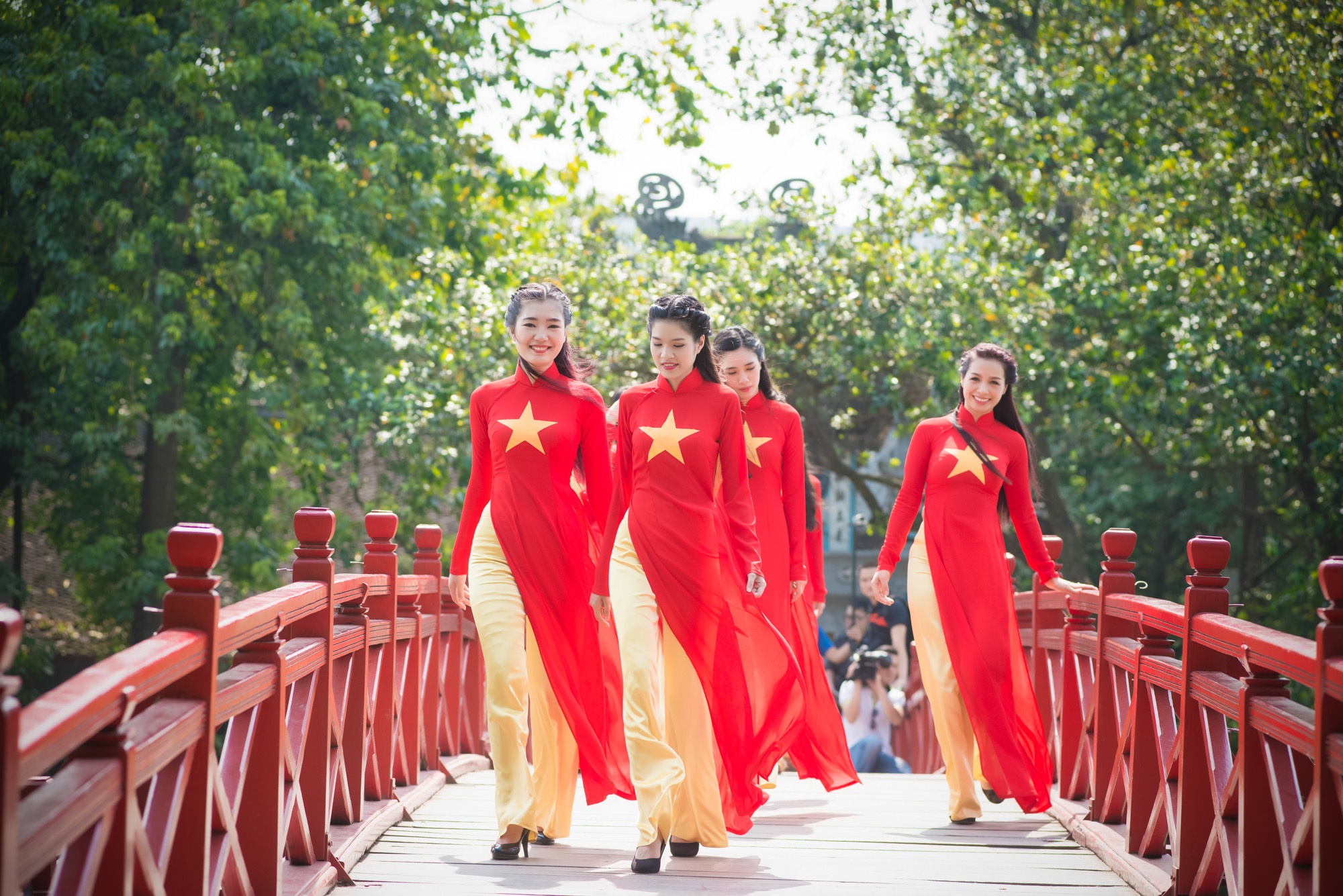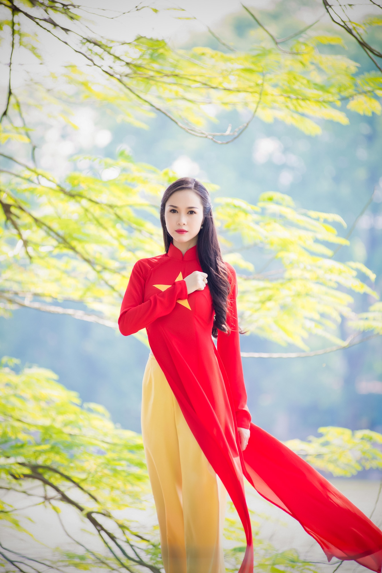 | Người đẹp tự hào khi khoác lên mình tà áo dài truyền thống, trong màu áo cờ đỏ sao vàng đầy ý nghĩa. |