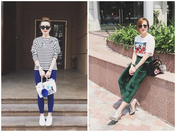 | Trà Ngọc Hằng tiếp tục khoe khả năng mix trang phục phá cách cùng giày thể thao, giày đế bệt. Những bộ cánh người đẹp chọn đều thuộc top xu hướng đang được ưa chuộng trên thế giới. |