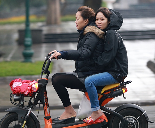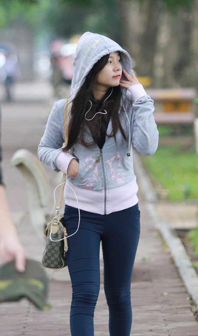 Các bạn trẻ diện thời trang mùa lạnh dạo quanh bờ Hồ cảm nhận tiết trời đầu đông. |