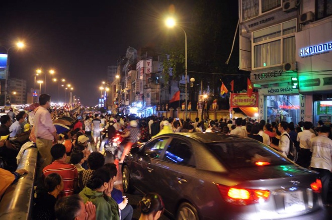 | Tổ đình Phúc Khánh cũng rất đông, dòng người tràn ra đường Tây Sơn, đứng trên cầu vượt Ngã Tư Sở. Ảnh: An Hoàng Thành. |
