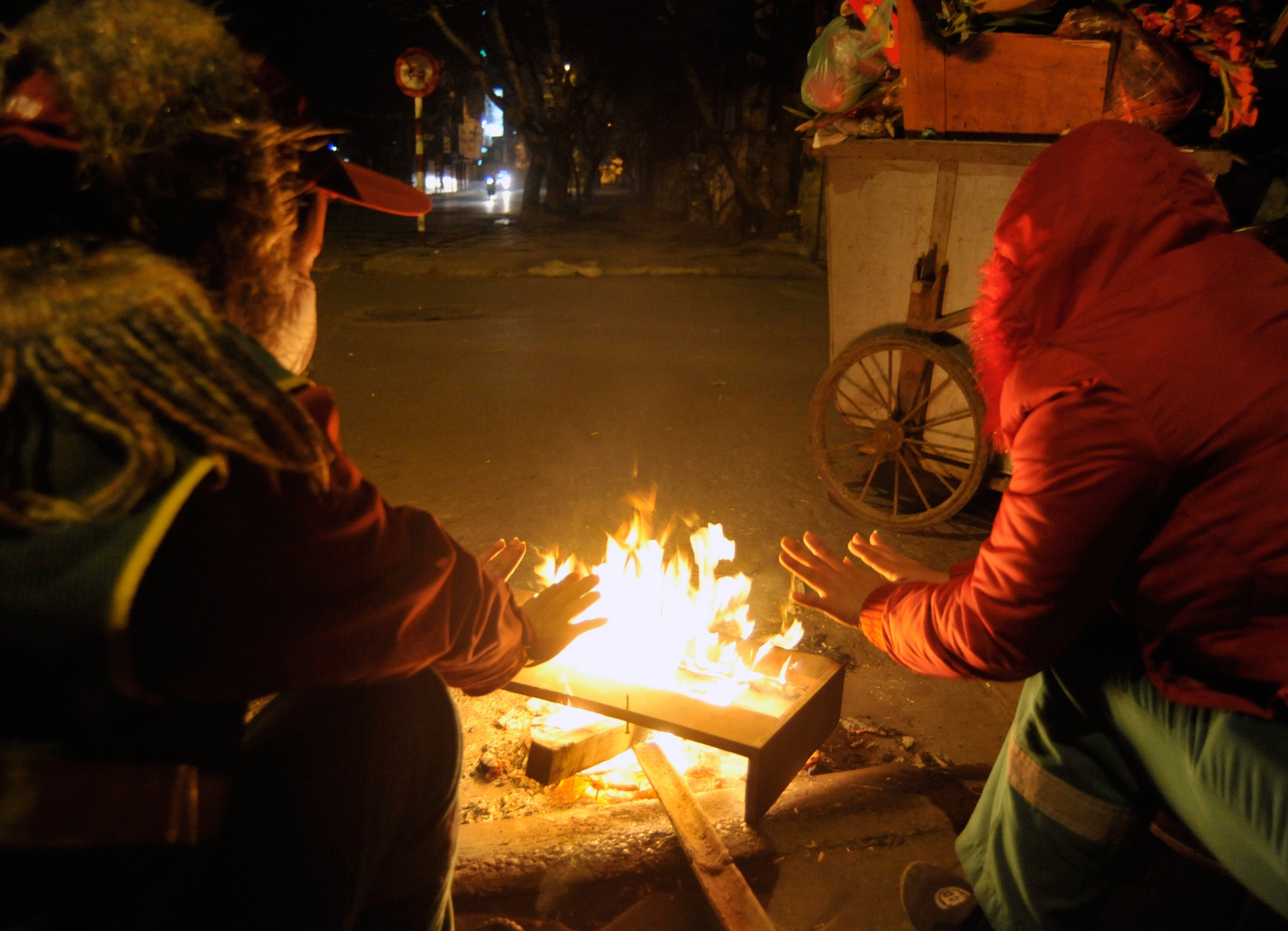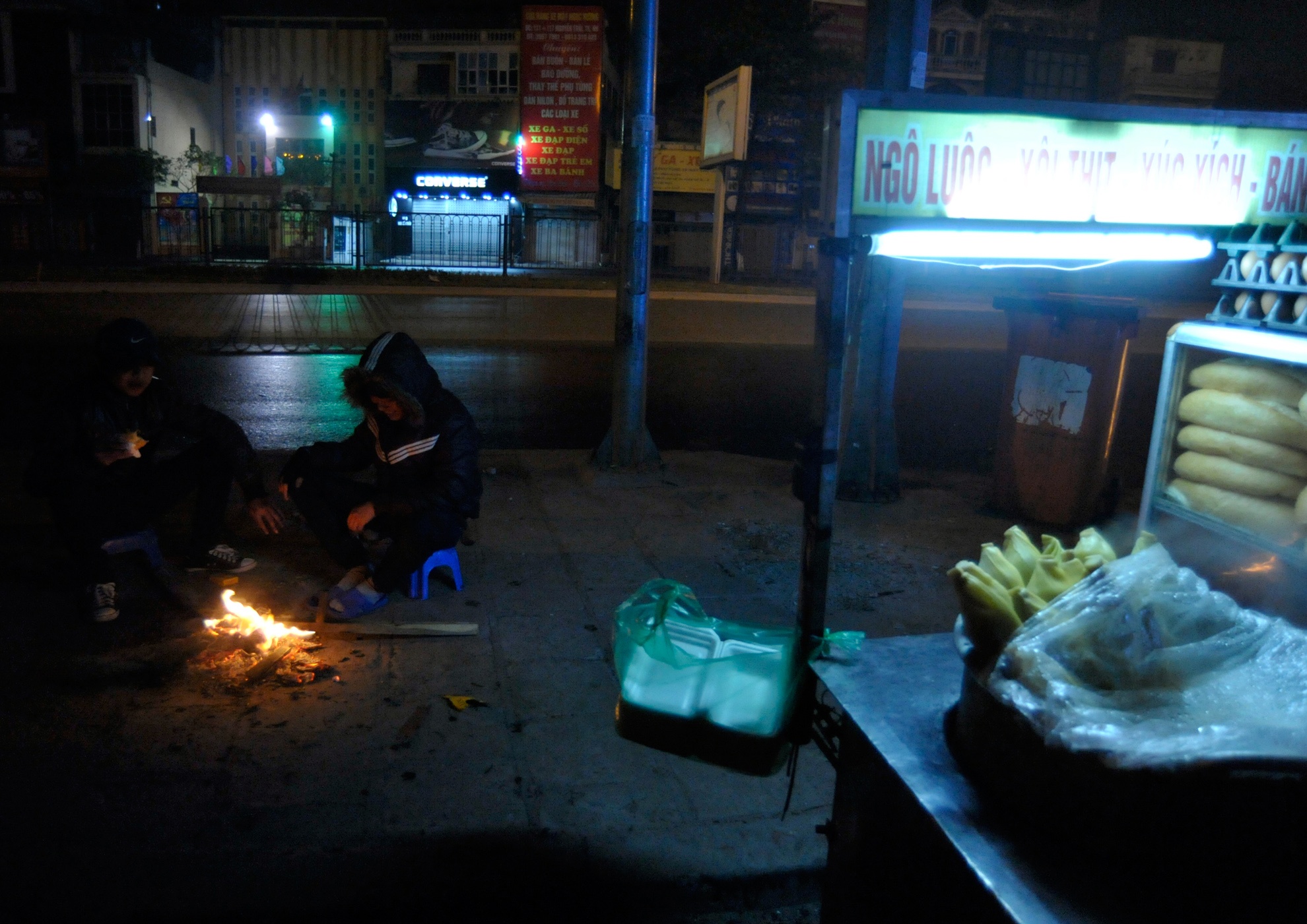 Người Hà Nội nằm bên đống lửa vỉa hè trong đêm lạnh
